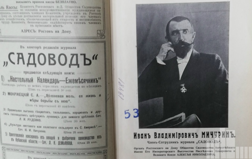 В 1906 году увидели свет научные труды И. В. Мичурина, посвященные проблемам выведения новых сортов плодовых деревьев. Статьи ученого по различным вопросам теории и практики селекции и семеноводства, впервые опубликованные на страницах ростовского «Садовода», были затем включены в его классическую монографию «Принципы и методы моей работы».