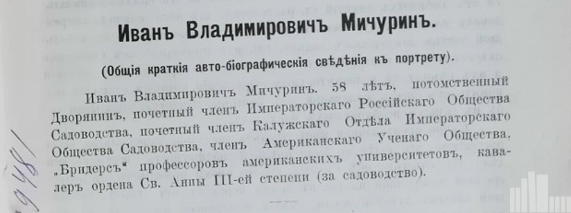 В 2025 году исполнилось 170 лет со дня рождения выдающегося естествоиспытателя, биолога, основоположника научной селекции плодовых культур Ивана Владимировича Мичурина (1855–1935), доктора биологии (1934), заслуженного деятеля науки и техники РСФСР (1934), почётного члена Академии наук СССР (1935), академика ВАСХНИЛ (1935), почётного член Чехословацкой аграрной академии (1935). Он создал более 300 новых сортов плодовых, ягодных, овощных и декоративных растений, разработал теорию отдалённой гибридизации и методы для её применения. Благодаря его работе стало возможным садоводство в регионах с более суровым климатом, таких как Сибирь и Урал. Награждён орденами Святой Анны 3-й степени (1912), Ленина (1931) и Трудового Красного Знамени (1931). Имел три прижизненных издания собраний сочинений.