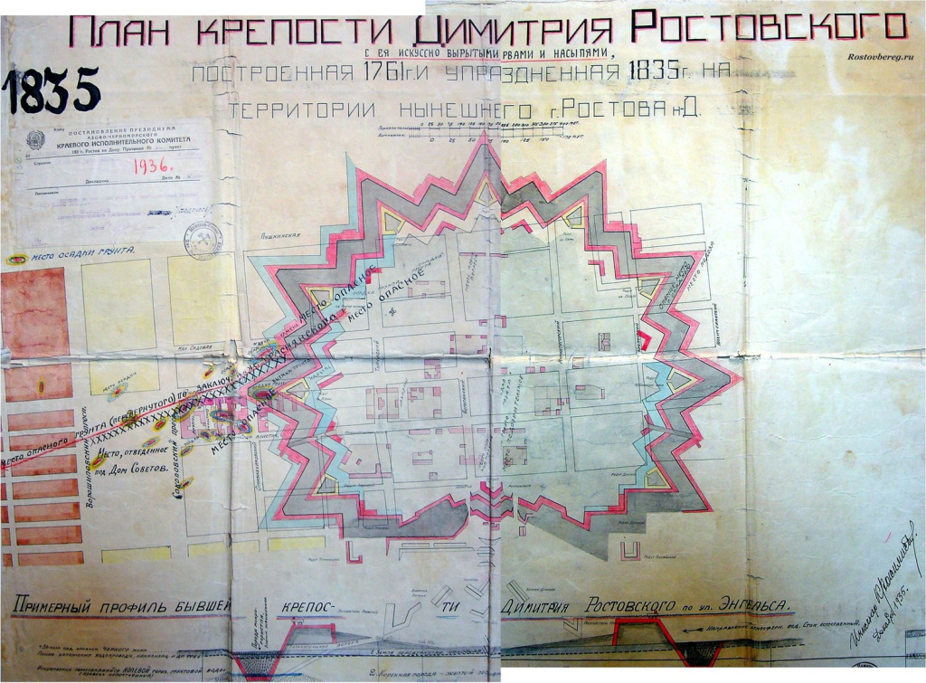 План крепости Димитрия Ростовского на территории Ростова-на-Дону, 1935 год