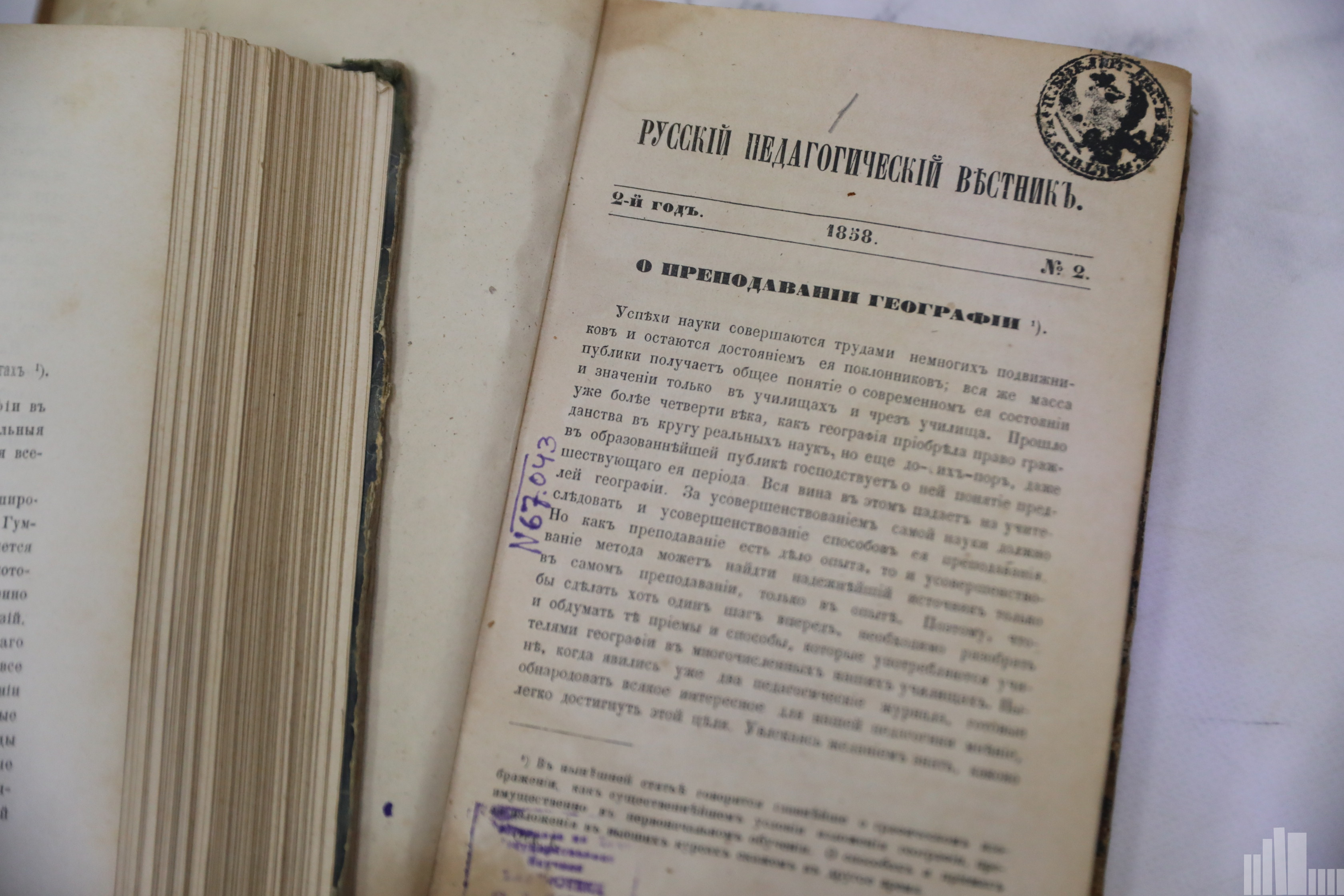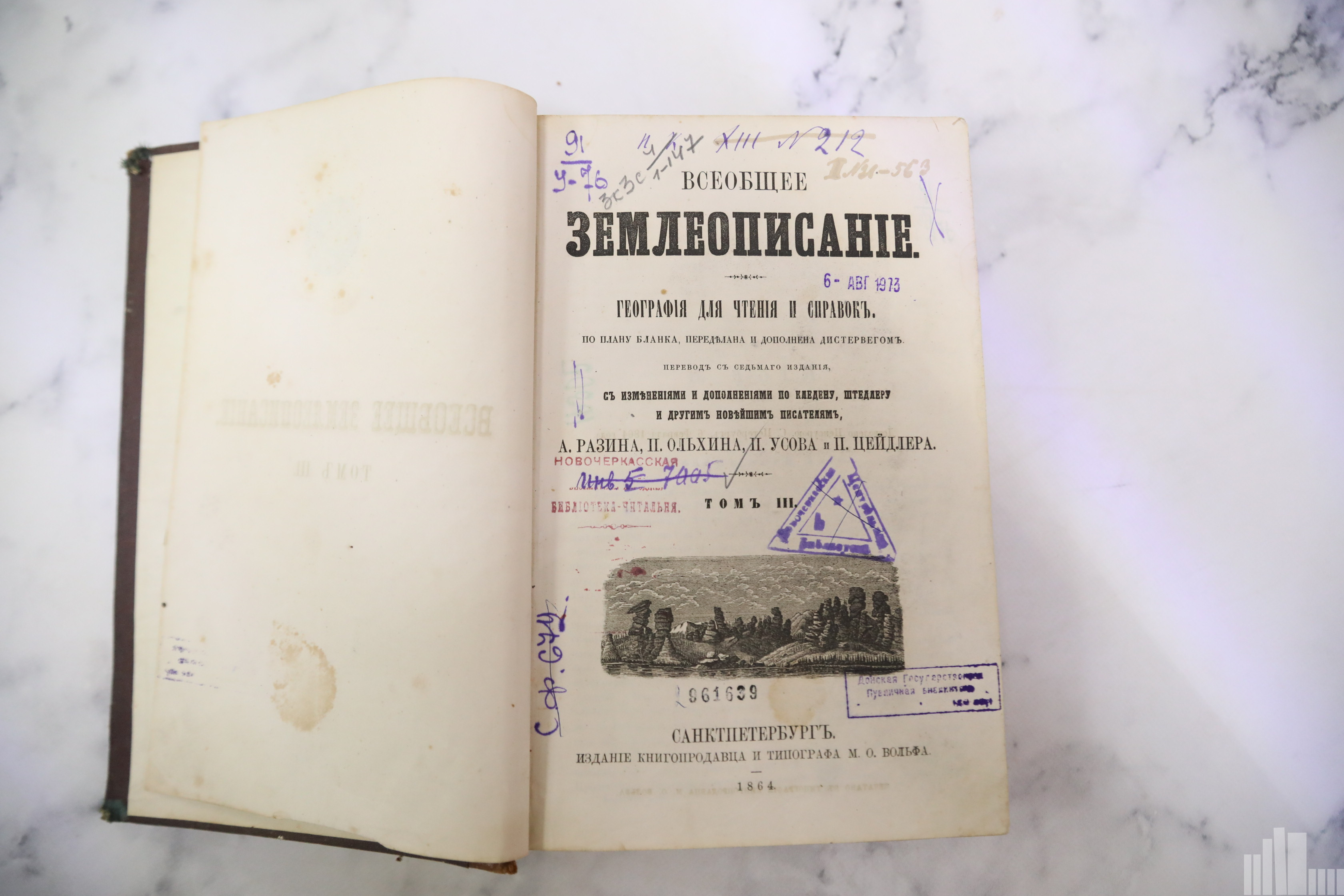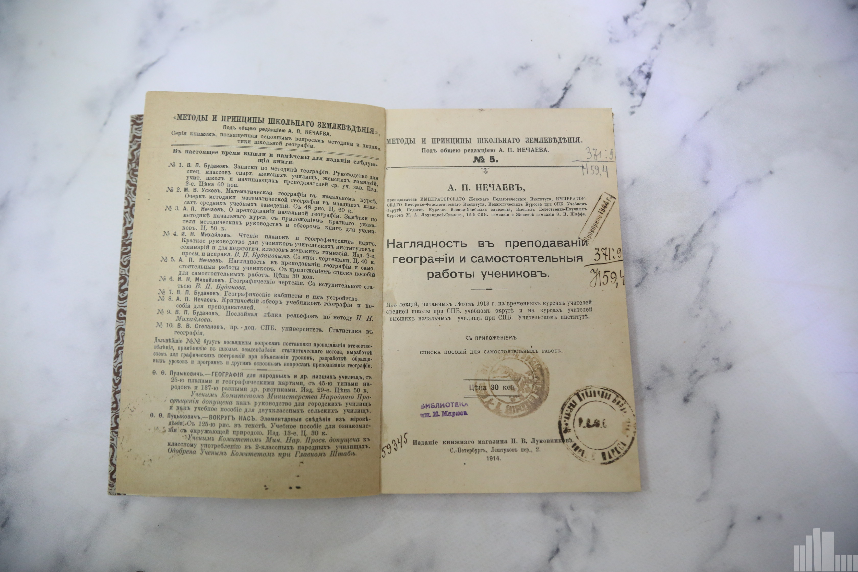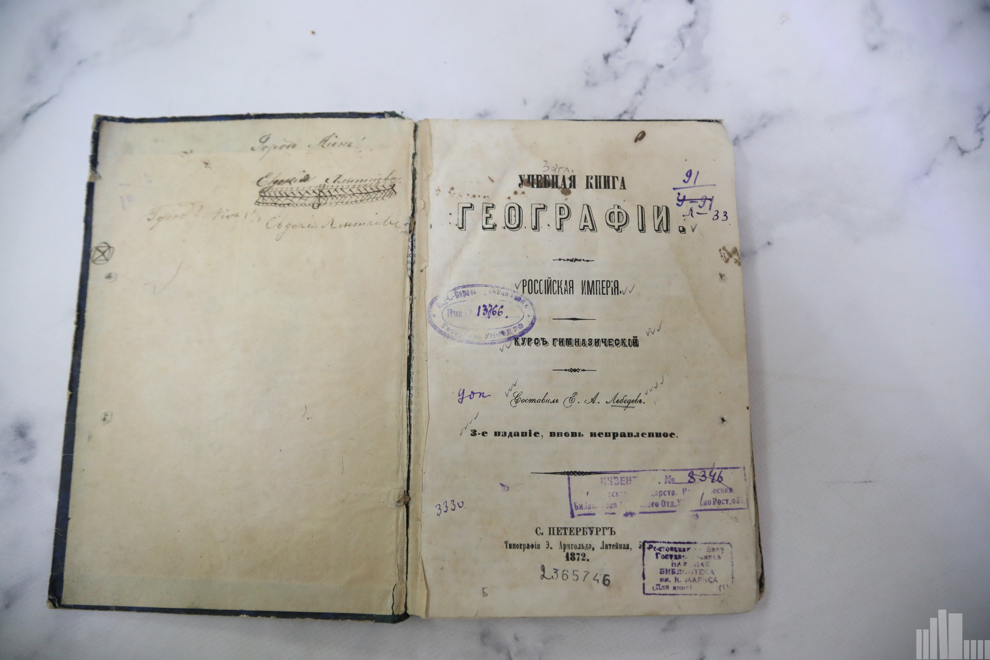 «Учебник географии», представленный на выставке в библиотеке, допущен Ученым комитетом Министерства народного просвещения в виде учебника для средних учебных заведений, рекомендован Учебным комитетом по учреждениям императрицы Марии как руководство для низших классов институтов и гимназий и одобрен Учебным комитетом при Святейшем Синоде для духовных училищ.