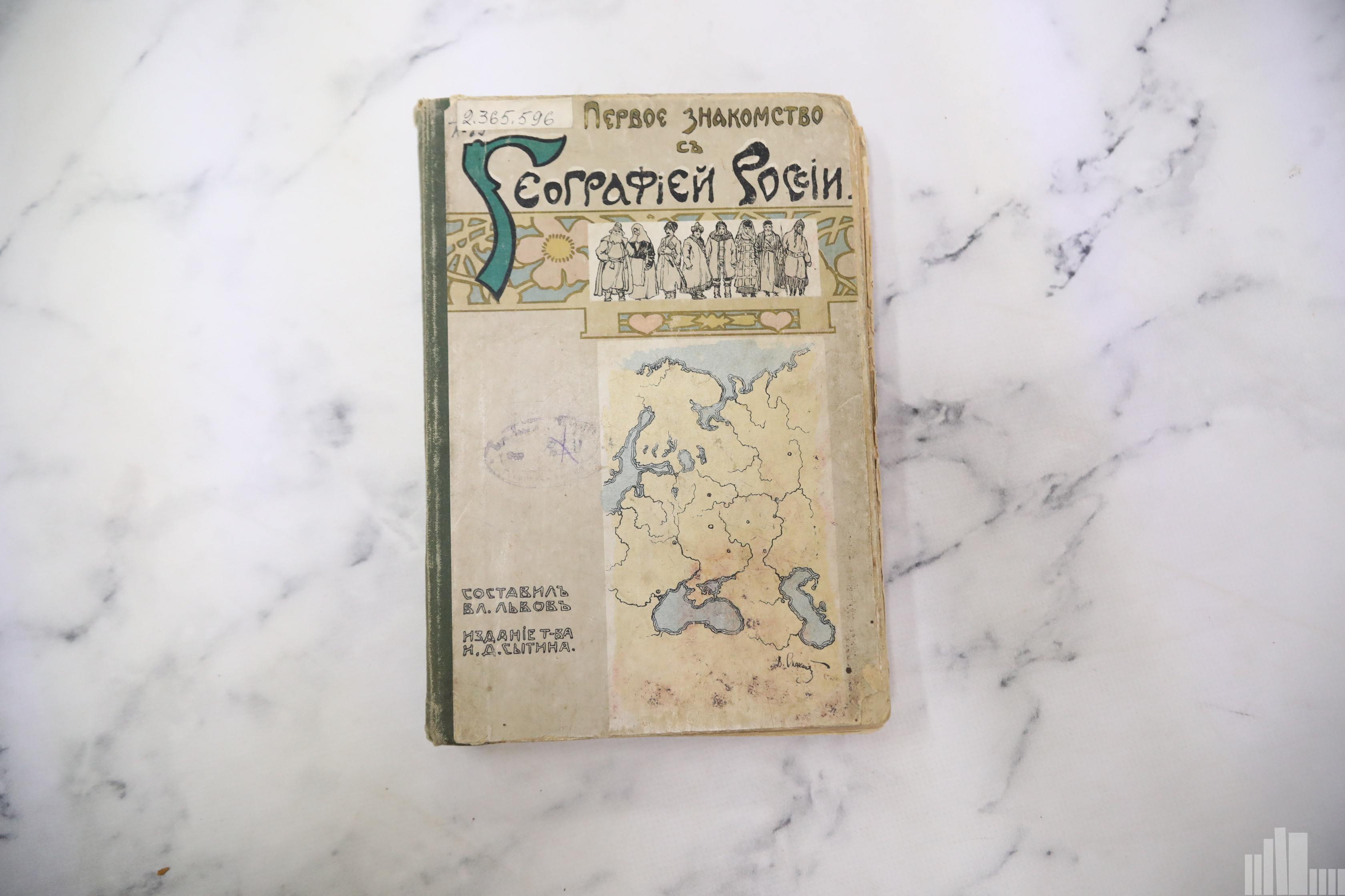 Из дореволюционных учебников на выставке представлен учебник Гермогена Ивановича Иванова «Начальный курс географии».