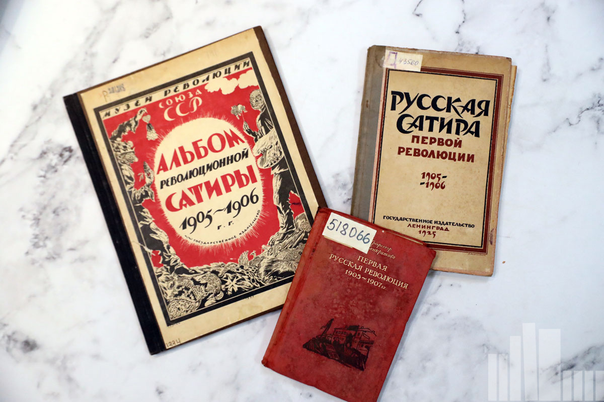 В экспозиции представлены сборники, освещавшие работу разных партий в годы Первой русской революции: