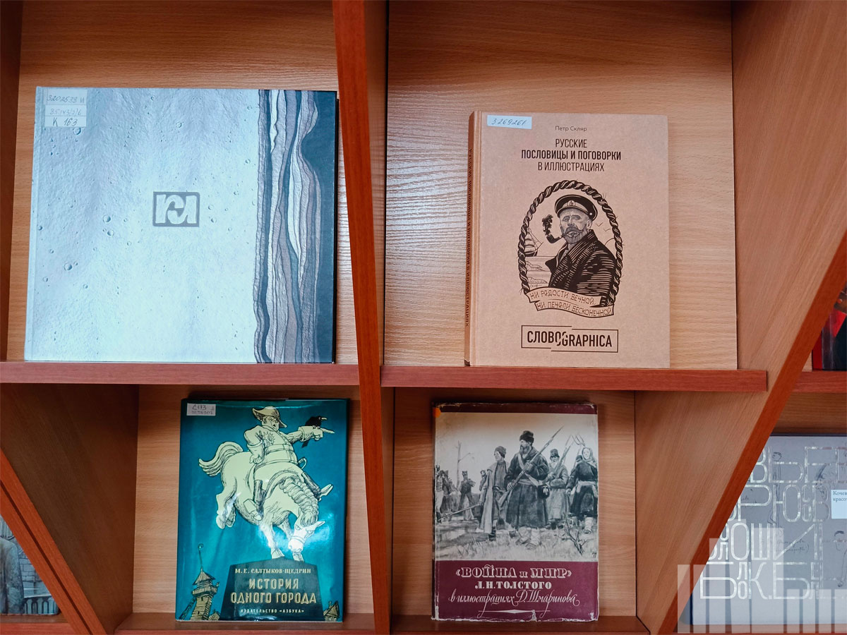 Также представлены книги знакомящие с творчеством В. Фаворского, И. Билибина, Л. Казбекова, О. Яхнина, братьев Траугот, А. Каневского, А. Пахомова, В. Чижикова.