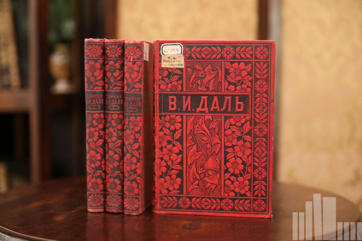 Книжная экспозиция представляет публикации произведений В. И. Даля, вышедшие отдельными книгами и в периодических изданиях, начиная с 30-х годов XIX века, в том числе опубликованные при его жизни. А также книги и статьи о жизни и творчестве писателя, изданные преимущественно в дореволюционный период.