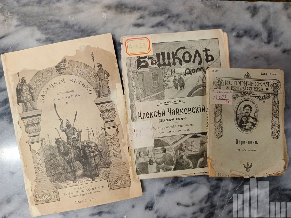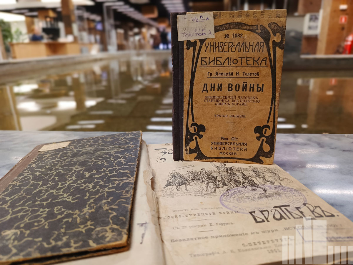 - повести А.К. Толстого «Князь Серебряный» (1897) и Лажечникова И.И. «Басурман», повесть о русско-турецкой войне В.И. Немировича-Данченко «За далеких братьев» (1901), сборник рассказов А.Н. Толстого «Дни войны» (1915), воспоминания А. Верещагина о генерале Скобелеве «А. В. Скобелев за Дунаем и в Ахал-Теке» (1901), очерки Амфитеатрова А.В. «1812» (1913);