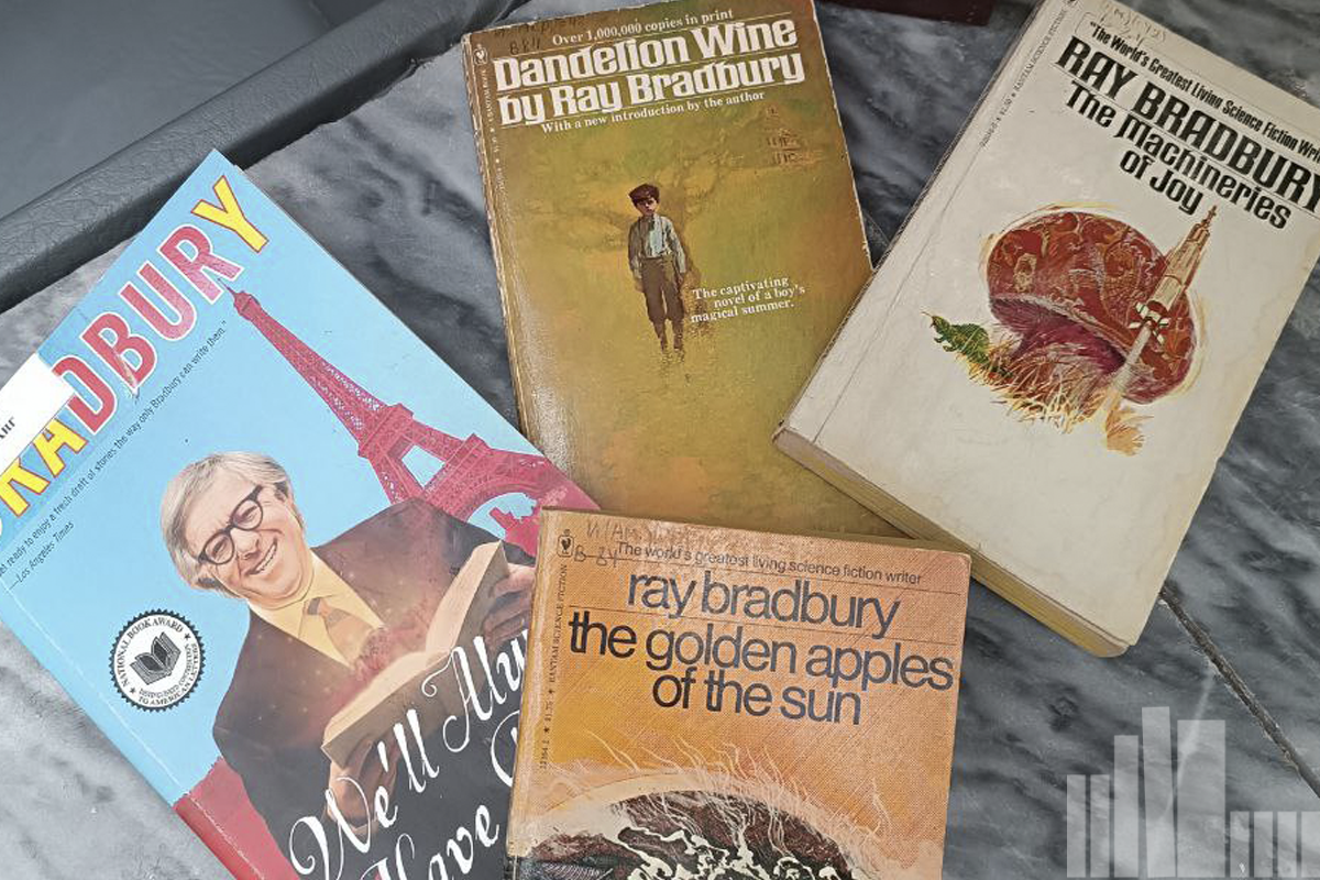 На выставке представлены: самые культовые произведения писателя на английском языке, такие как: «Вино из одуванчиков», «Золотые яблоки солнца», «Механизмы радости» и др., интересные статьи о жизни и творчестве писателя.