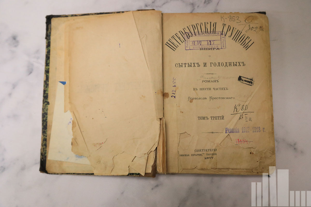 В экспозиции представлены прижизненные издания произведений В. В. Крестовского из фондов библиотеки.