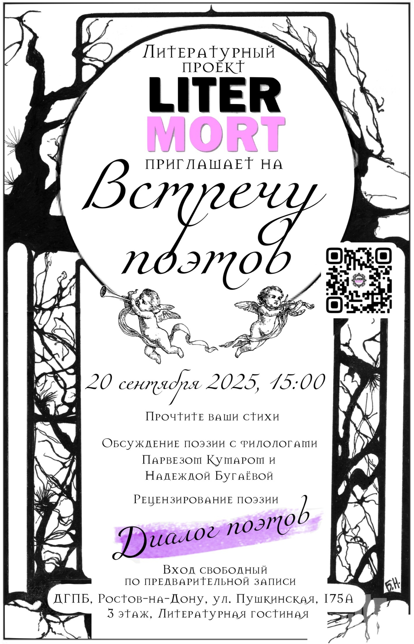 Литературно-просветительский проект LiterMort приглашает ростовских поэтов и чтецов на творческую встречу. Участников ждёт живой диалог о современной поэзии и возможность представить свои произведения.