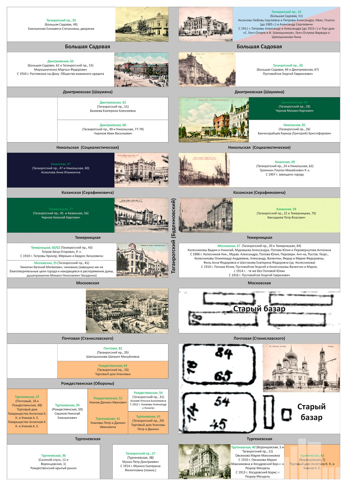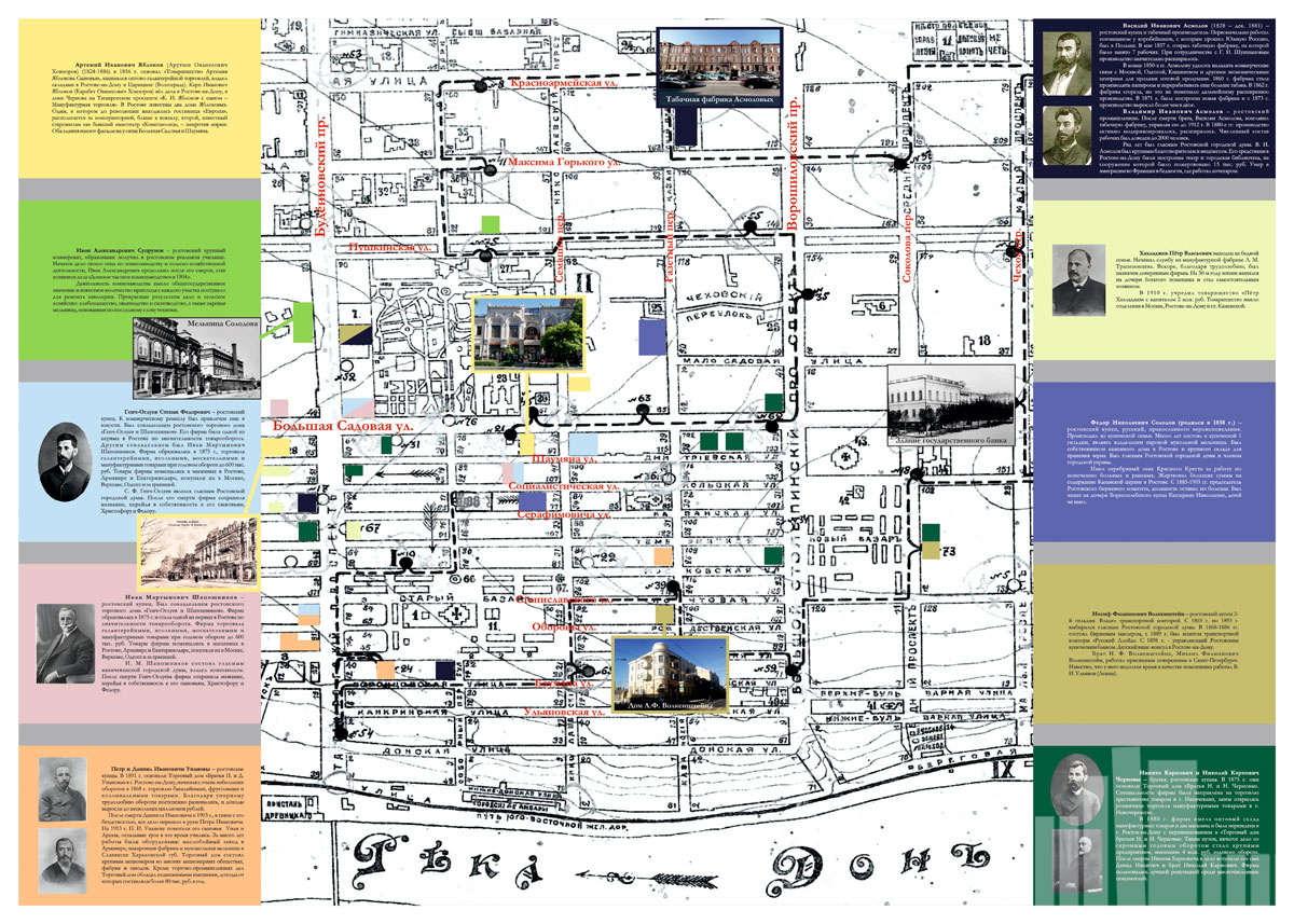 Что вы увидите: подробный план центра Ростова‑на‑Дону с указанием домовладельцев за период 1903–1916 гг.; архивные данные из книг «Оценка недвижимых имуществ города Ростова‑на‑Дону для раскладки государственного налога и других сборов» (1903–1916); систематизированные сведения по каждому домовладению, представленные в наглядном формате; редкие фотографии центральных улиц и знаковых зданий города — многие из этих архитектурных памятников не сохранились до наших дней.