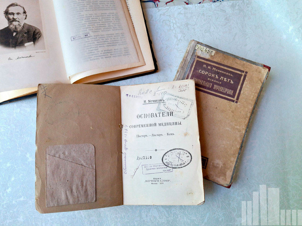 На выставке представлены труды И. И. Мечникова, в том числе академическое собрание сочинений, прижизненные издания его монографий и статей из фондов Донской публичной библиотеки, а также литература о жизни и деятельности ученого.