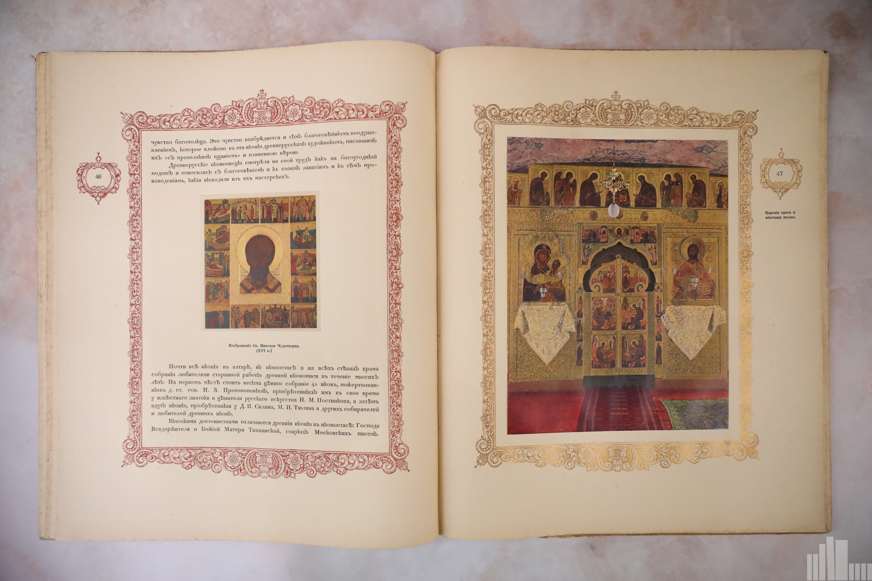 Художественную часть альбома редактировал профессор живописи, замечательный русский художник В. М. Васнецов. В книге впервые были помещены цветные репродукции с картин Леонида Сырнева, изображающие интерьер пещерного храма. Орнаментация, буквицы, заставки и виньетки выполнены Б. Зворыкиным в технике цинкографии. Иллюстрации, портреты в тексте исполнены в техниках гелиогравюры и автотипии.