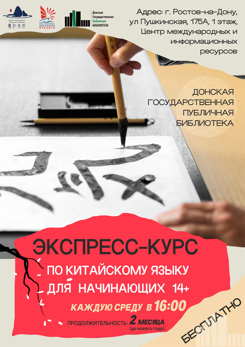 Библиотека совместно с ООО «Нарухито» и Клубом китайско-российской дружбы приглашает всех желающих в возрасте от 14 лет на бесплатный двухмесячный курс по изучению китайского языка!