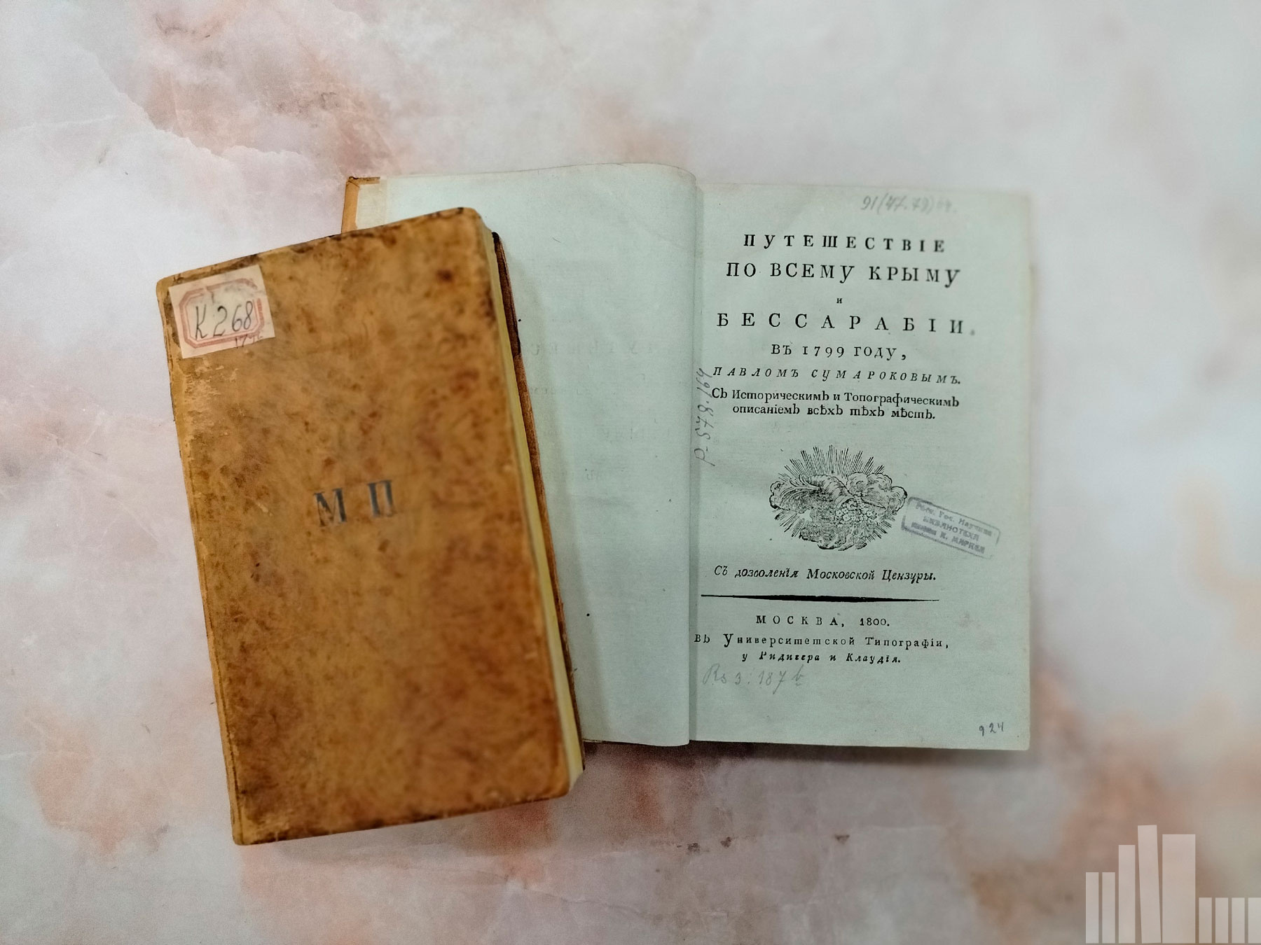 В фондах библиотеки хранится подлинная жемчужина — редчайшее издание «Путешествие по всему Крыму и Бессарабии в 1799 году» Павла Ивановича Сумарокова (Москва, 1800).