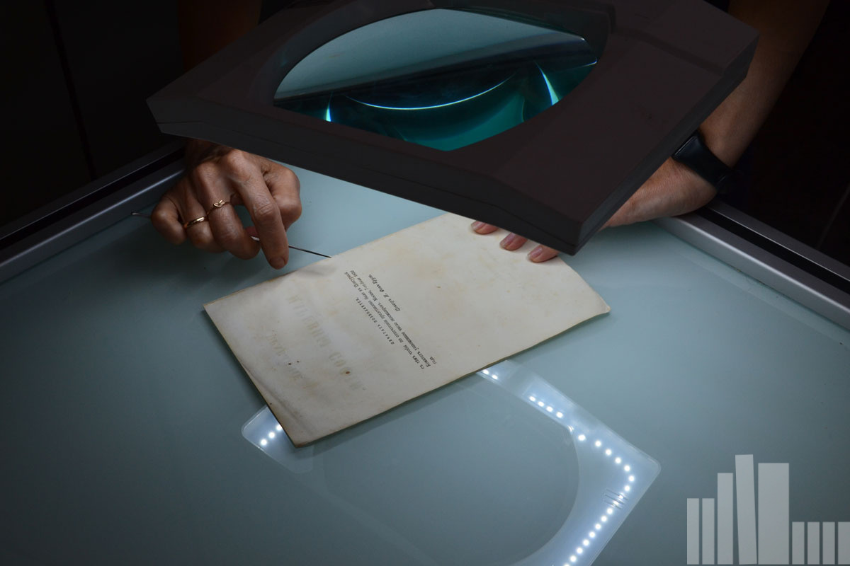 - лупа с подсветкой благодаря кратности увеличения поможет проводить качественно миниатюрные реставрационные работы и восстанавливать переплеты документов различных форматов.