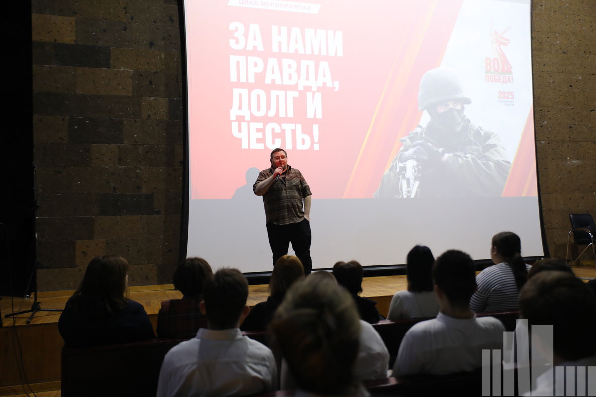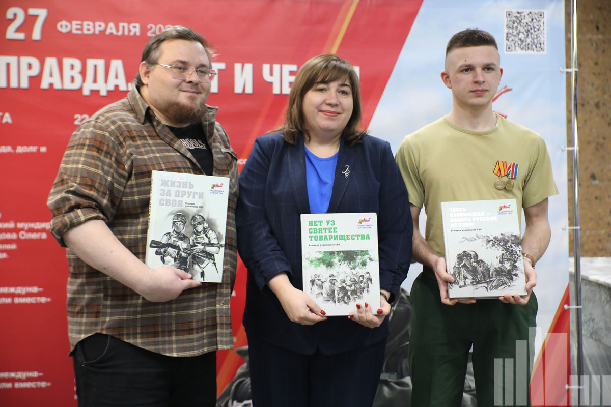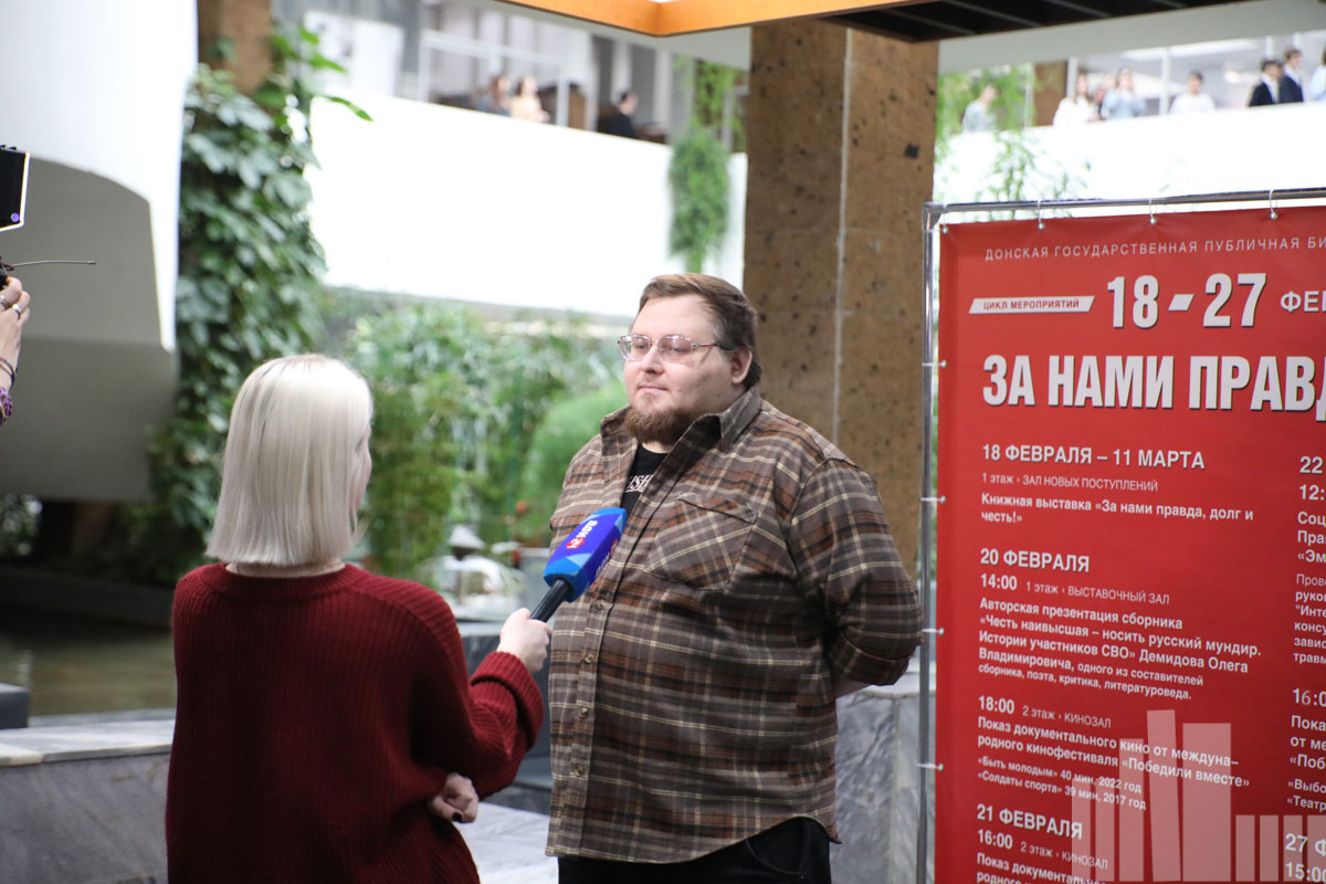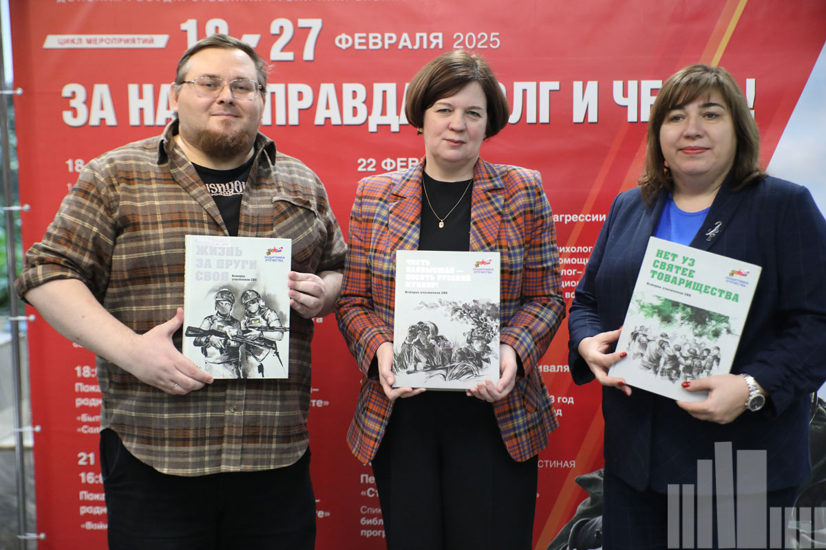 20 февраля в библиотеке в рамках цикла мероприятий «За нами правда, долг и честь!» прошла презентация третьего сборника «Честь наивысшая – носить русский мундир. Истории участников СВО», выпущенного фондом «Защитники Отечества». Его представил поэт, критик, литературовед и один из составителей сборника - Олег Демидов. Участниками встречи стала учащаяся молодежь Ростова-на-Дону.