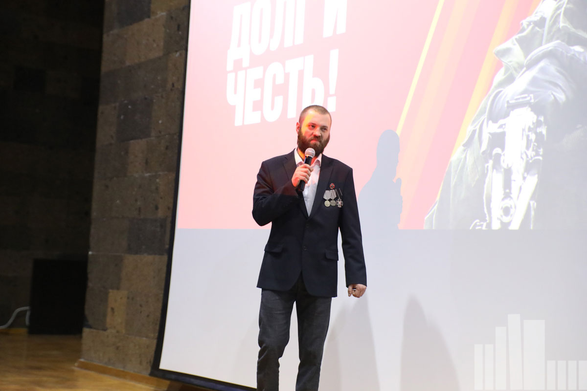 Автор поделился со слушателями своими размышлениями о текущем моменте. Он рассказал о работе над книгой и провёл параллели между настоящим временем и периодом Великой Отечественной войны, подчеркнув важность сохранения каждодневной «истории» из первых рук, ответил на вопросы из зала.