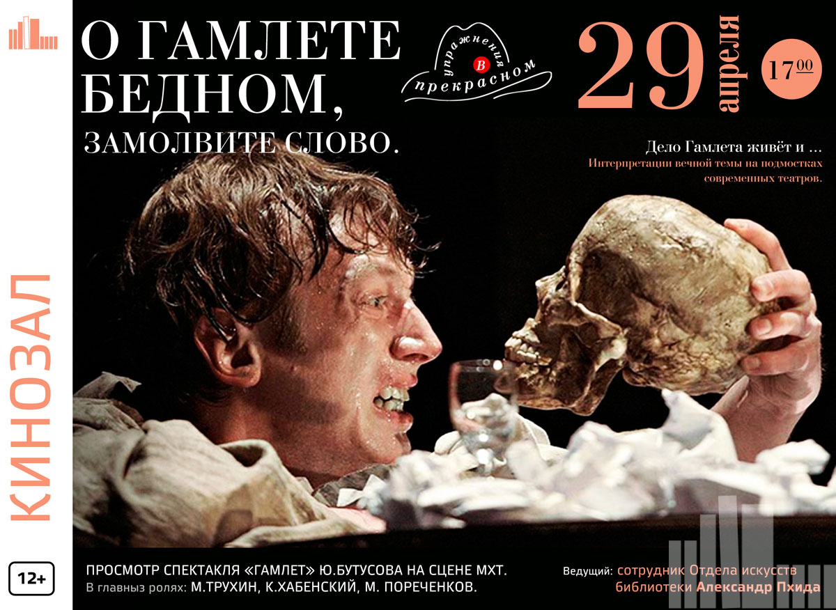 29 апреля в 17.00 в кинозале библиотеки состоится очередная встреча проекта «Упражнения в прекрасном» на тему: «О Гамлете бедном, замолвите слово».