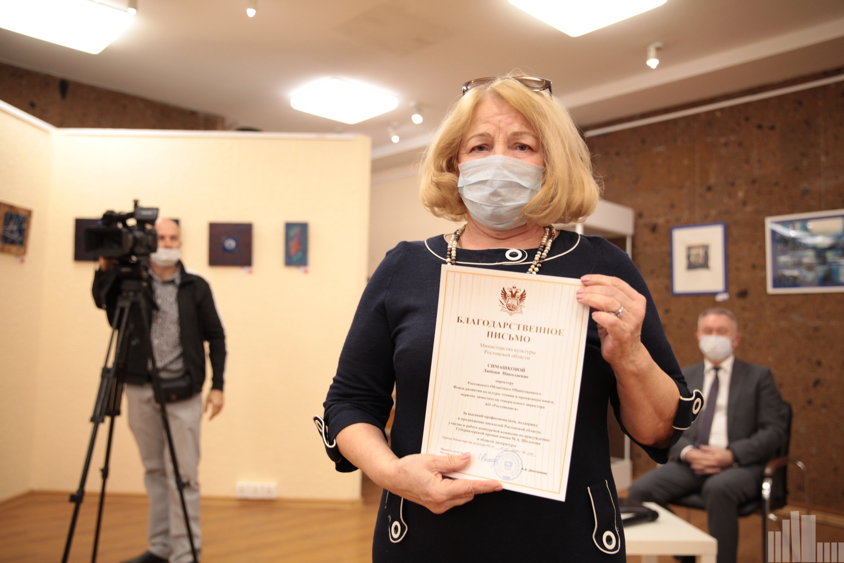 За высокий профессионализм, поддержку и продвижение творчества писателей Ростовской области, участие в работе конкурсной комиссии по присуждению Губернаторской премии имени М.А. Шолохова в области литературы были вручены Благодарственные письма министерства культуры Ростовской области.