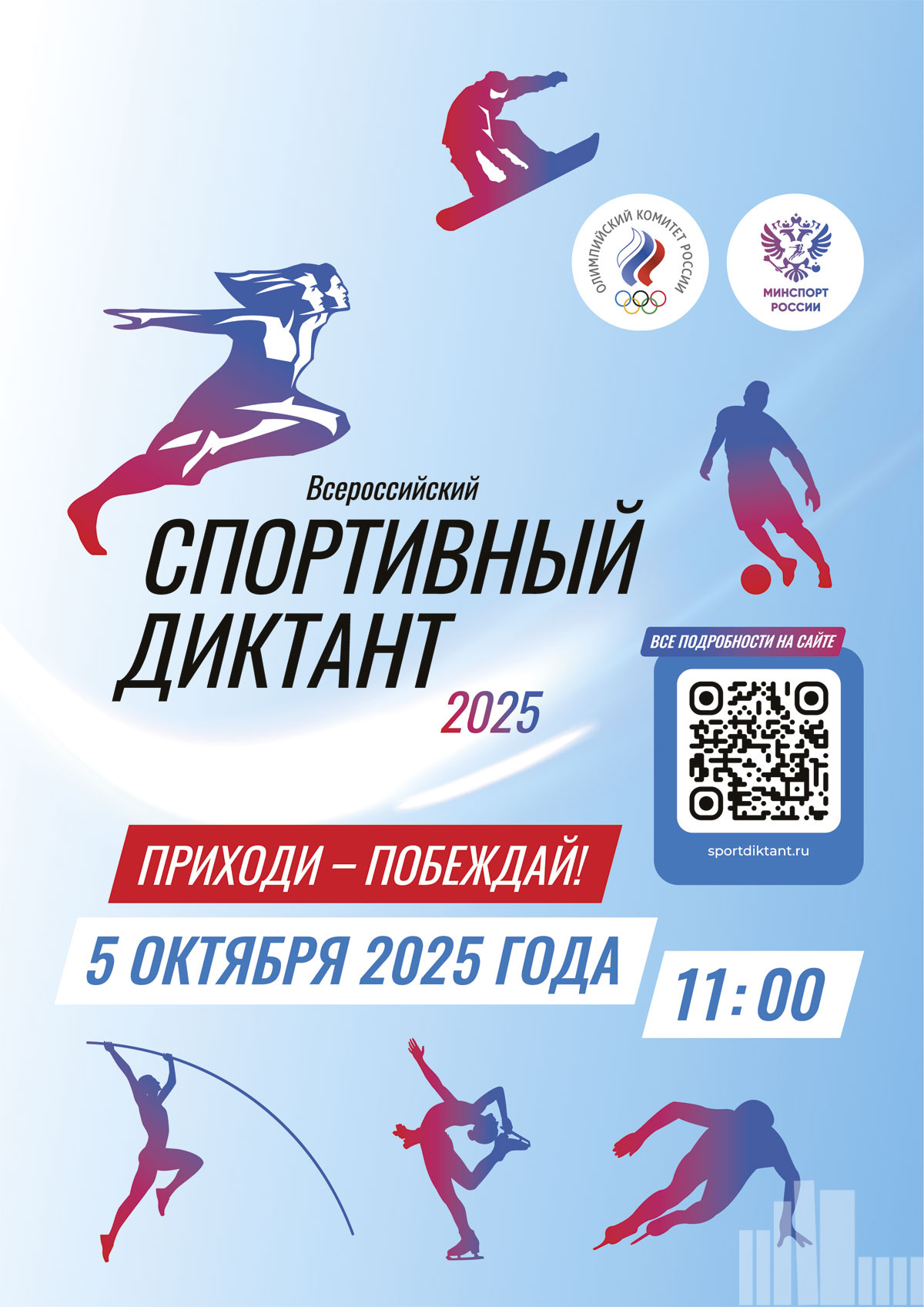 Библиотека приглашает всех желающих проверить свои знания о спорте и здоровом образе жизни. 5 октября 2025 года в 11:00 мы станем одной из главной официальной площадкой для очного участия во Всероссийском спортивном диктанте — масштабной акции Олимпийского комитета России.