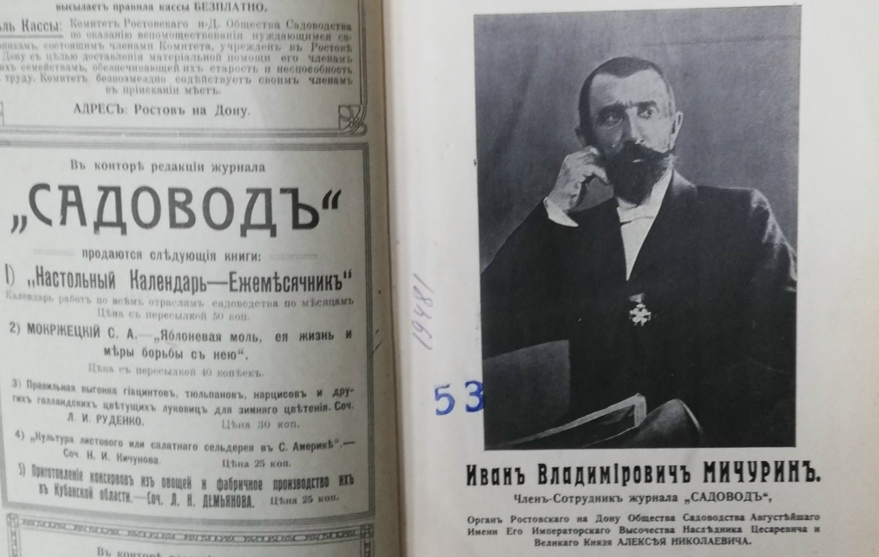 В 1906 году увидели свет научные труды И. В. Мичурина, посвященные проблемам выведения новых сортов плодовых деревьев. Статьи ученого по различным вопросам теории и практики селекции и семеноводства, впервые опубликованные на страницах ростовского «Садовода», были затем включены в его классическую монографию «Принципы и методы моей работы».