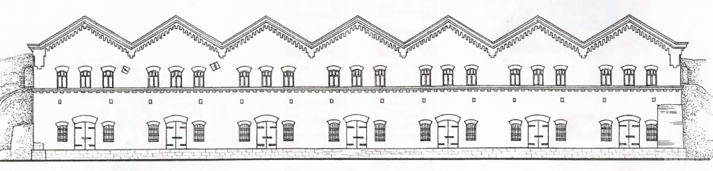 Склад с семизубчатым силуэтом — наверное, самый известный из всех. В оформлении корпусов использован лаконичный кирпичный декор с мотивами романского зодчества и классицизма.