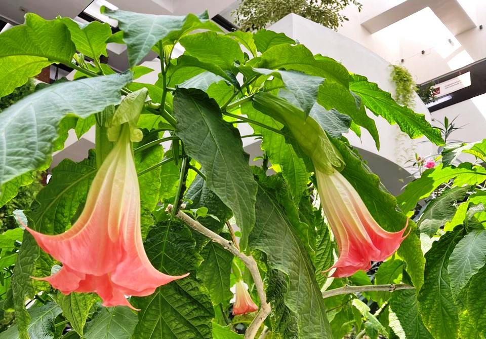 В мире существуют удивительные пространства, где архитектура зданий библиотек гармонично сливается с природой. Вам уже известно ботаническое чудо нашей библиотеки. Зимний сад в Публичке один из самых крупных библиотечных зимних садов в России. Он мастерски интегрирован в функциональное пространство здания, доказывая, что природа и знание неразделимы. С 1994 года глаз наших гостей и читателей радует около 50 видов растений 25 семейств. Это настоящие «лёгкие» и «душа» огромного учреждения. На протяжении 30 лет в зимнем саду прибавлялись новые зелёные жители, приходя на замену тем, кто не смог прижиться в зимний период. В летнее время в Зимнем саду можно увидеть алые цветки гибискуса, персиковые колокола бругмансии, нежно-розовые соцветия олеандра и голубые облака цветущей свинчатки. Пальмы, лианы и кустарники вечнозеленые здесь примут и заботливо укроют под сенью своих крон любого, кто решит остаться на мгновение с книгой в руках.