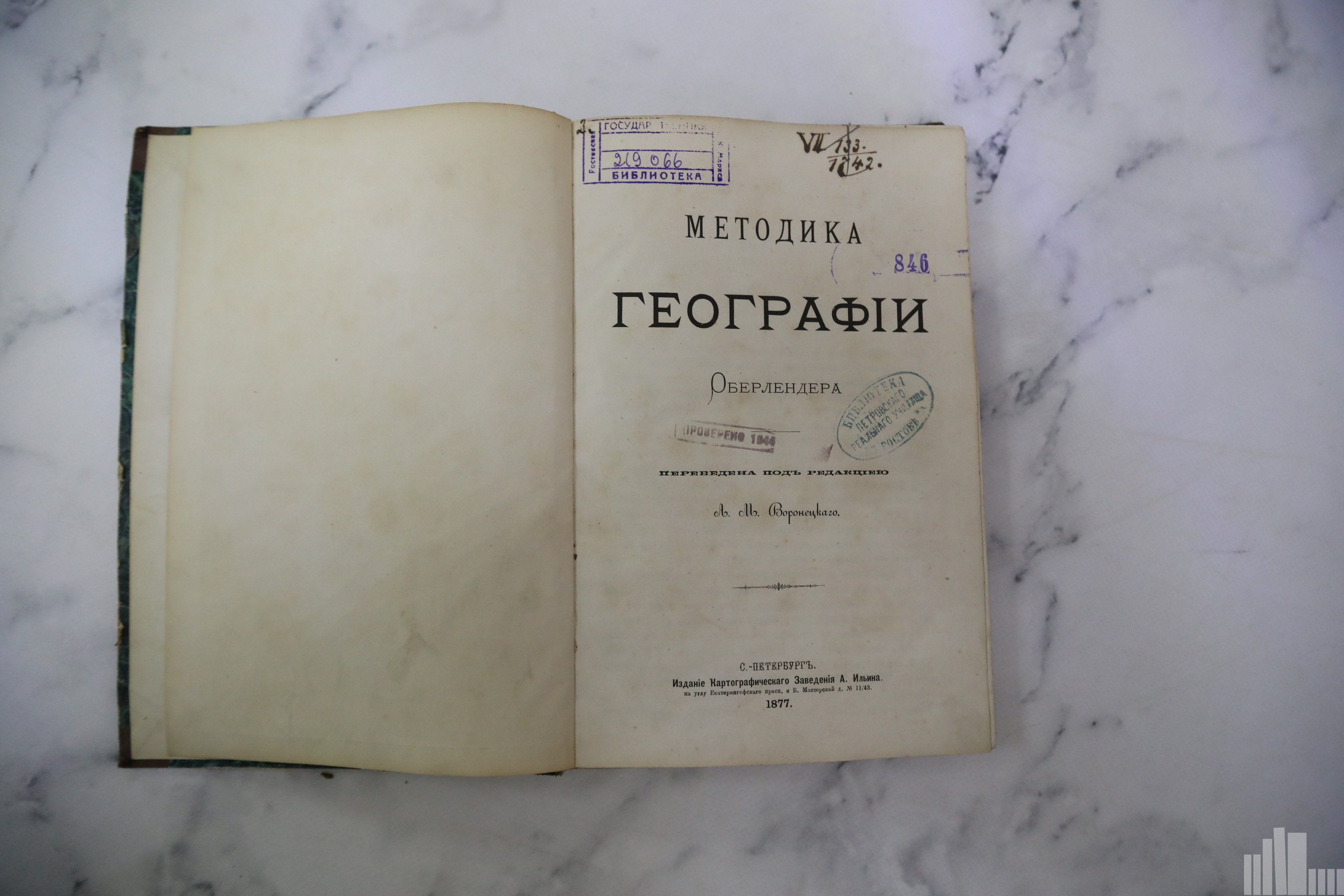 «Учебник географии», представленный на выставке в библиотеке, допущен Ученым комитетом Министерства народного просвещения в виде учебника для средних учебных заведений, рекомендован Учебным комитетом по учреждениям императрицы Марии как руководство для низших классов институтов и гимназий и одобрен Учебным комитетом при Святейшем Синоде для духовных училищ.