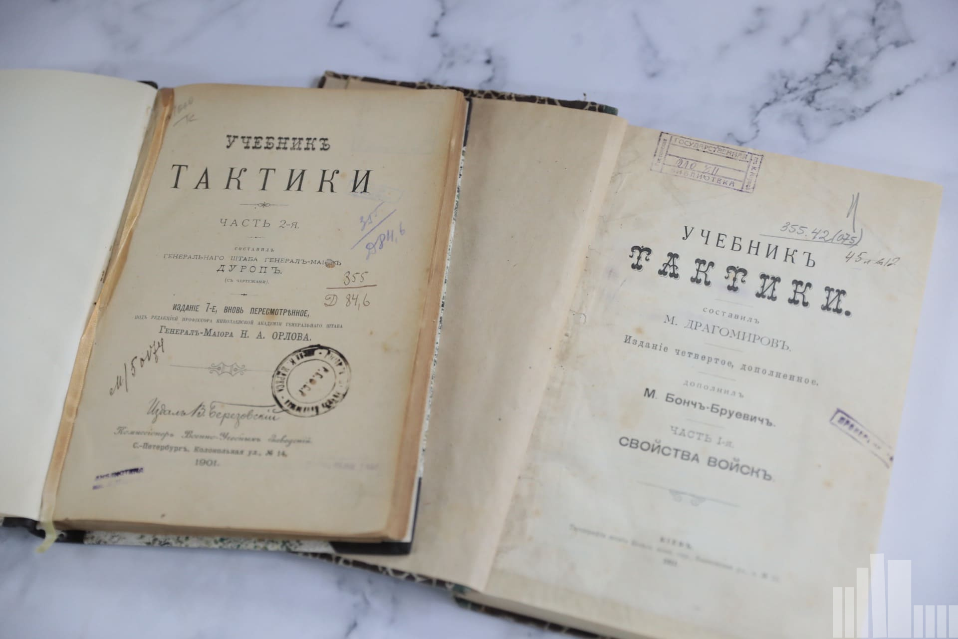На выставке экспонируется «Учебник тактики» в 2 частях русского военного писателя, генерала от инфантерии Дуропа К. Н. С 1881 года выдержал 10 изданий. На выставке представлено первое издание.