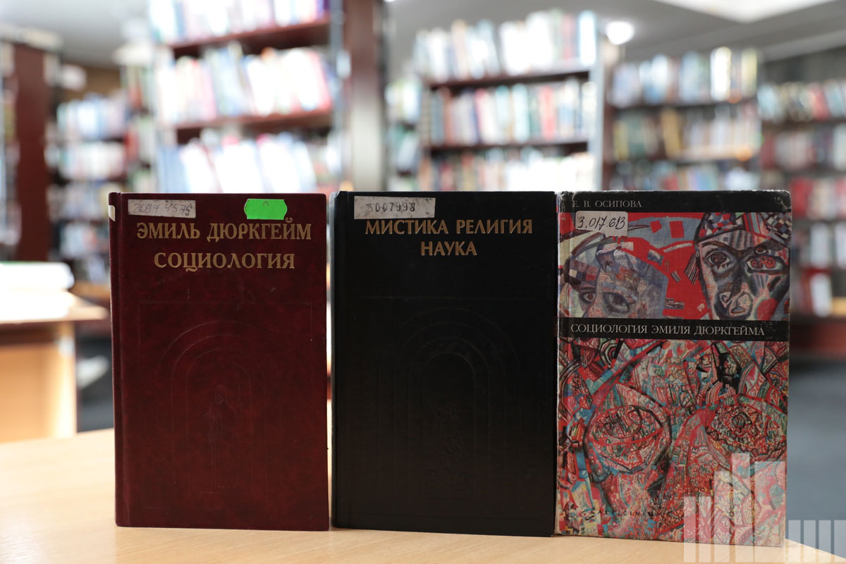 На выставке представлены монографии ученого: «Социология», «Самоубийство», «Элементарные формы религиозной жизни», а также книги биографического содержания: Осипова Е. В. «Социология Эмиля Дюркгейма», Гофман А. Б. «Эмиль Дюркгейм в России», «7 лекций по истории социологии», периодическая печать.
