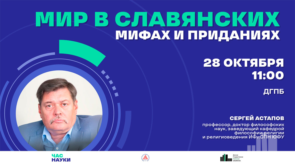 Научно-популярный проект «Час науки» продолжает знакомить ростовских школьников, их родителей и педагогов с увлекательными темами из мира науки и культуры. В рамках очередной интерактивной лекции участники прикоснутся к волшебному миру славянской мифологии и узнают, как древние славяне представляли себе происхождение мира, жизнь богов и духов природы, что значили для наших предков солнце, вода, земля и воздух, а также, какие образы и символы прошли сквозь века и до сих пор живут в языке, фольклоре и народных традициях.