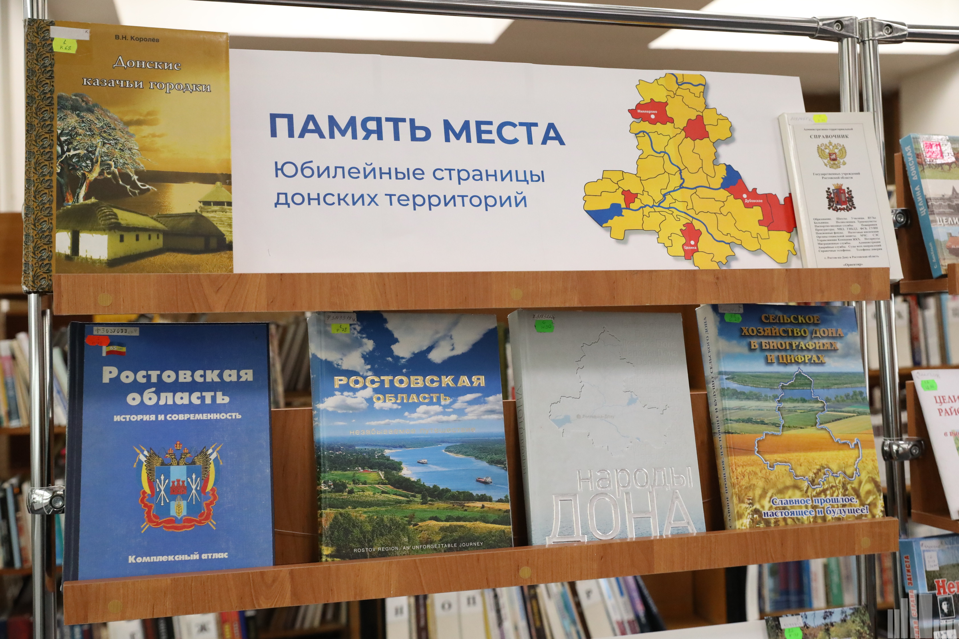 Выставка «Память места: юбилейные страницы донских территорий» подготовлена отделом краеведения Донской государственной публичной библиотеки и приурочена Году народного единства. На выставке представлены донские территории, которые праздную юбилейные даты в 2026 году: город Миллерово, посёлок Целина, село Дубовское, районы — Заветинский, Милютинский, Мясниковский. Каждый из них — часть большой мозаики донской земли, со своими традициями, героями и достижениями.