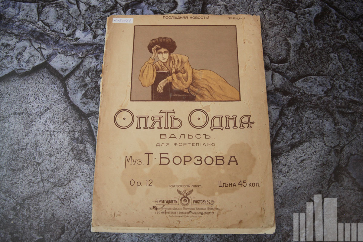 Представлены ноты конца XIX и первой половины XX века в оригинальном оформлении. Экспозиция организована совместно отделом искусств и центром по работе с книжными памятниками Ростовской области.