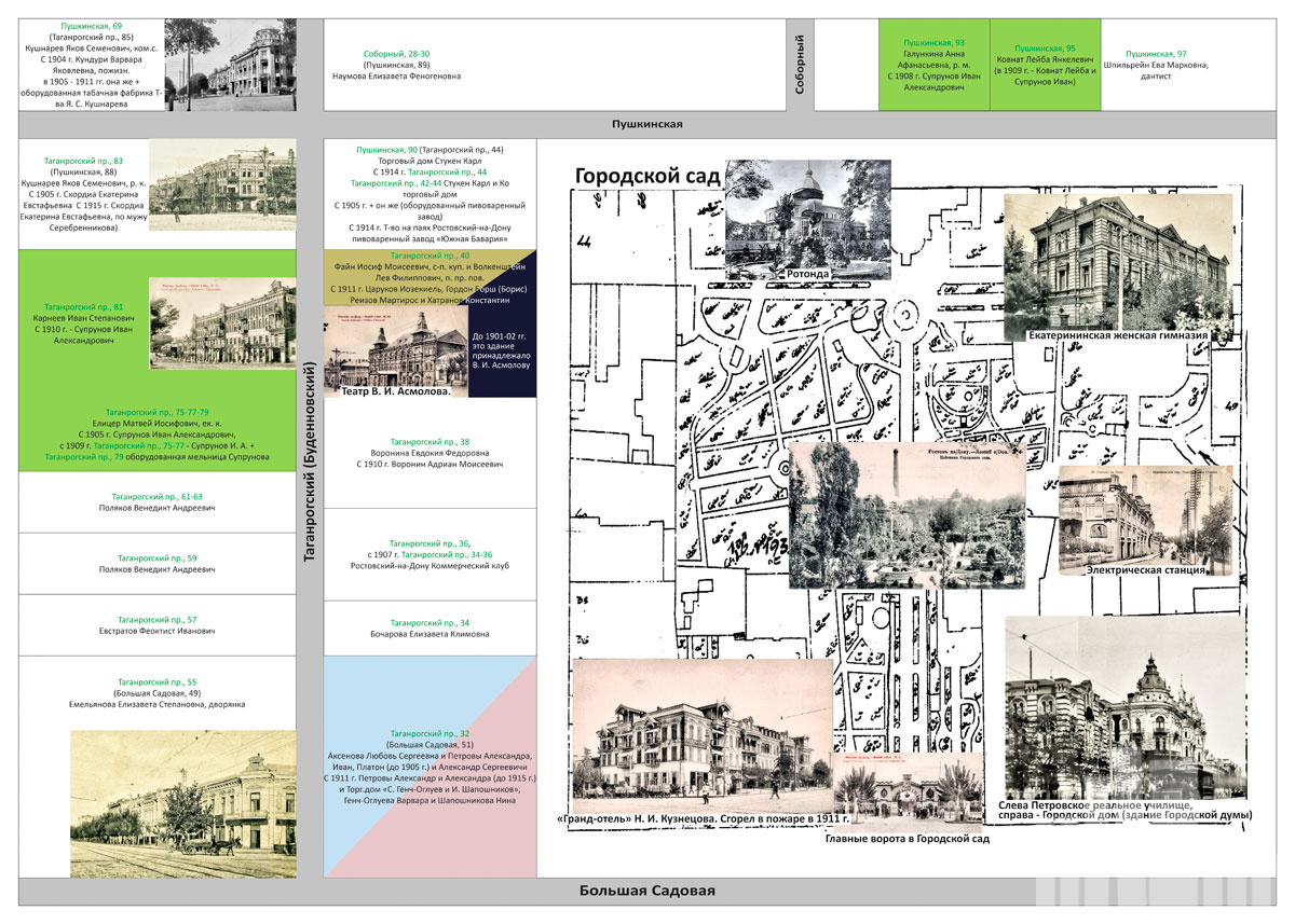 Что вы увидите: подробный план центра Ростова‑на‑Дону с указанием домовладельцев за период 1903–1916 гг.; архивные данные из книг «Оценка недвижимых имуществ города Ростова‑на‑Дону для раскладки государственного налога и других сборов» (1903–1916); систематизированные сведения по каждому домовладению, представленные в наглядном формате; редкие фотографии центральных улиц и знаковых зданий города — многие из этих архитектурных памятников не сохранились до наших дней.