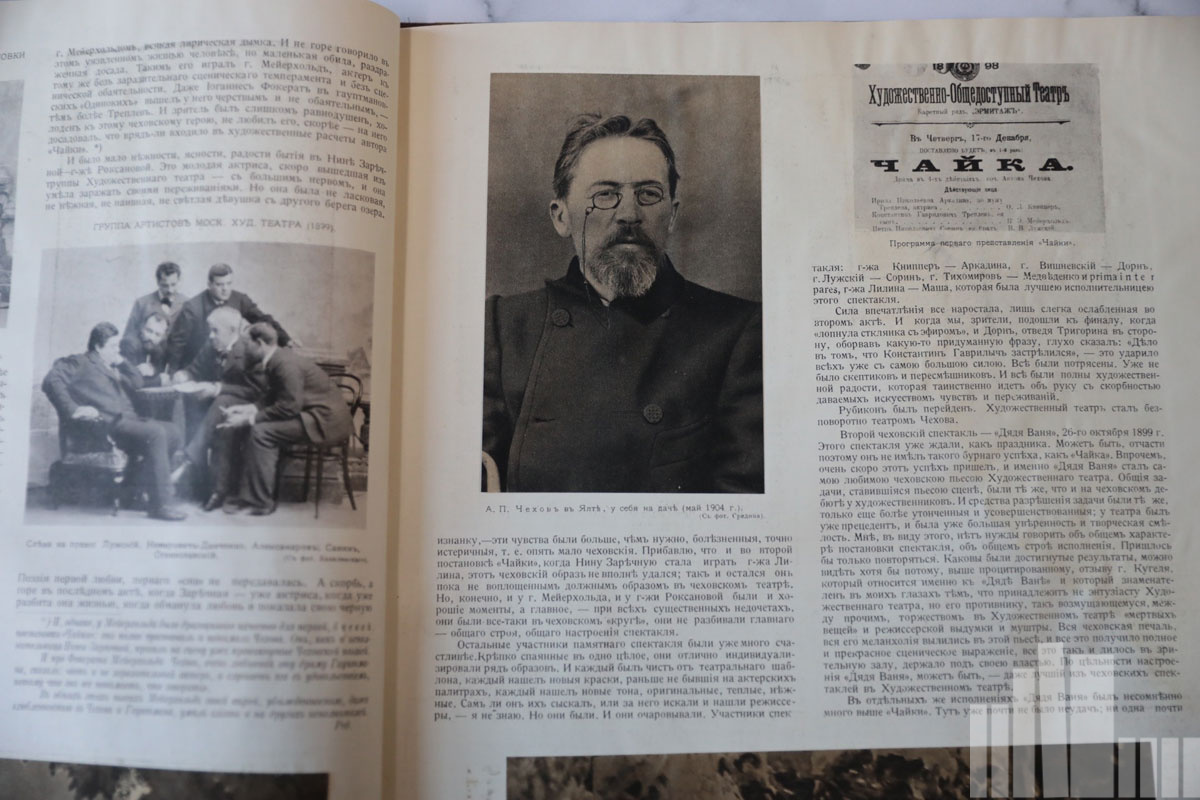 Седьмой номер «Альбома “Солнца России”» за 1914 год был посвящен Московскому Художественному театру и пьесам А. П. Чехова «Чайка», «Дядя Ваня», «Три сестры», «Вишневый сад», «Иванов». В издании 190 портретов и фотографий А. П. Чехова, артистов театра, сцен из спектаклей, рисунков декораций. Издательская обложка работы известного русского художника М. Добужинского. Орнаментация в тексте А. М. Арнштама. Предисловие В. И. Немировича-Данченко, статья «Чехов и Художественный театр» Н. Эфроса. Издание имеет большой формат: 31х 40 см.