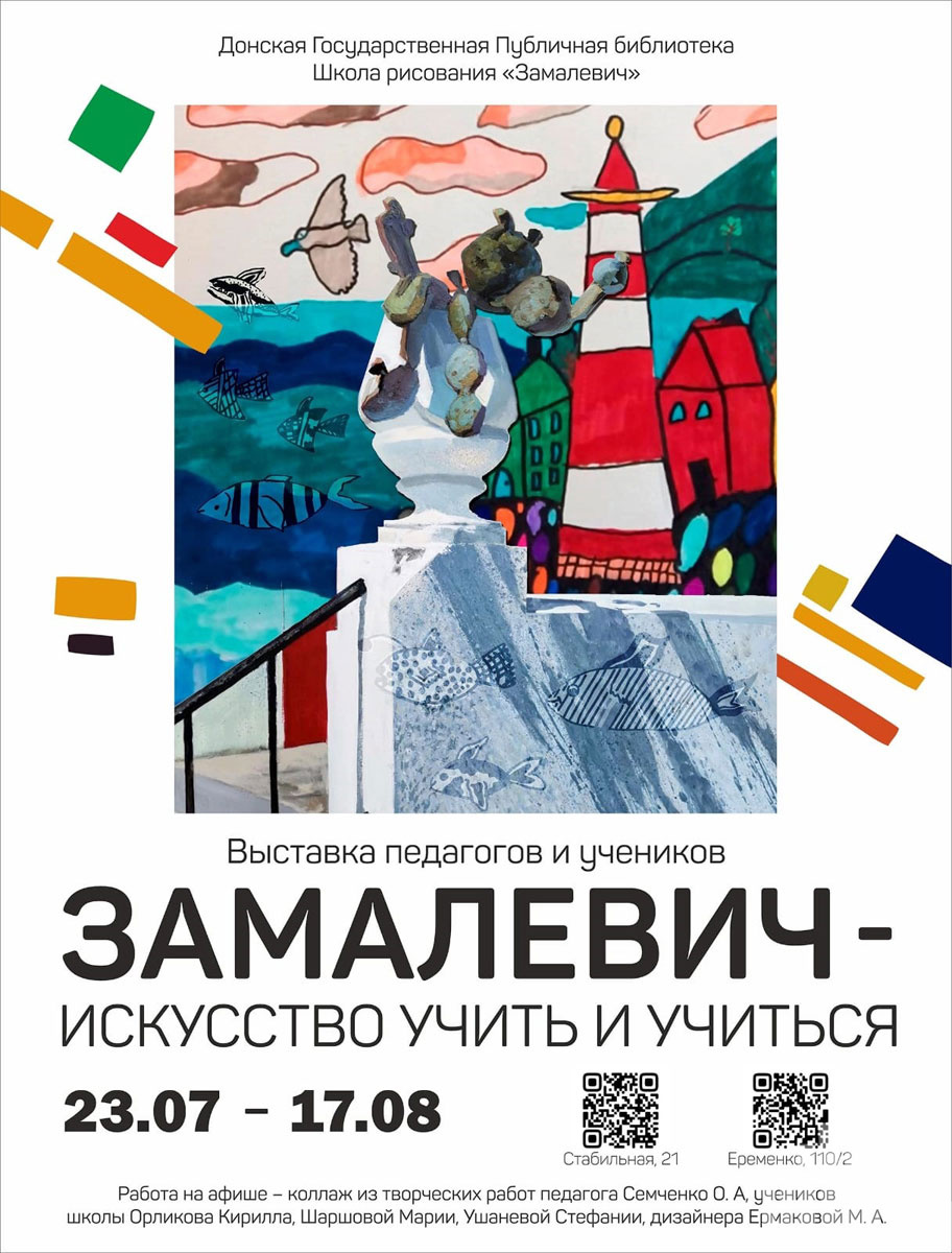 Школа рисования «Замалевич» уже много лет вносит свой вклад в развитие художественного образования на Дону. Преподаватели школы работают в ведущих вузах Юга страны, участвуют в крупнейших российских выставках и ведут за собой подрастающее поколение.