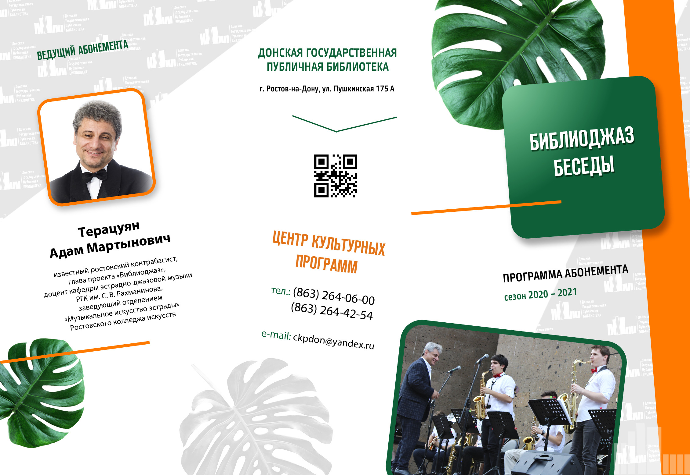 Абонемент включает в себя цикл видеолекций об истории джаза. Автор и ведущий - Адам Мартынович Терацуян, известный ростовский контрабасист, глава проекта «Библиоджаз», доцент кафедры эстрадно-джазовой музыки РГК им. С. В. Рахманинова, заведующий отделением «Музыкальное искусство эстрады» Ростовского колледжа искусств.