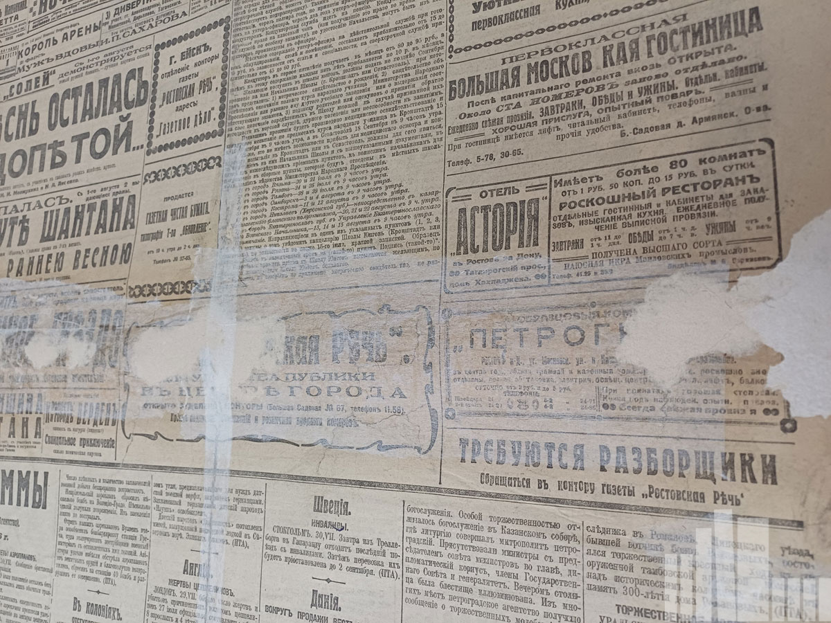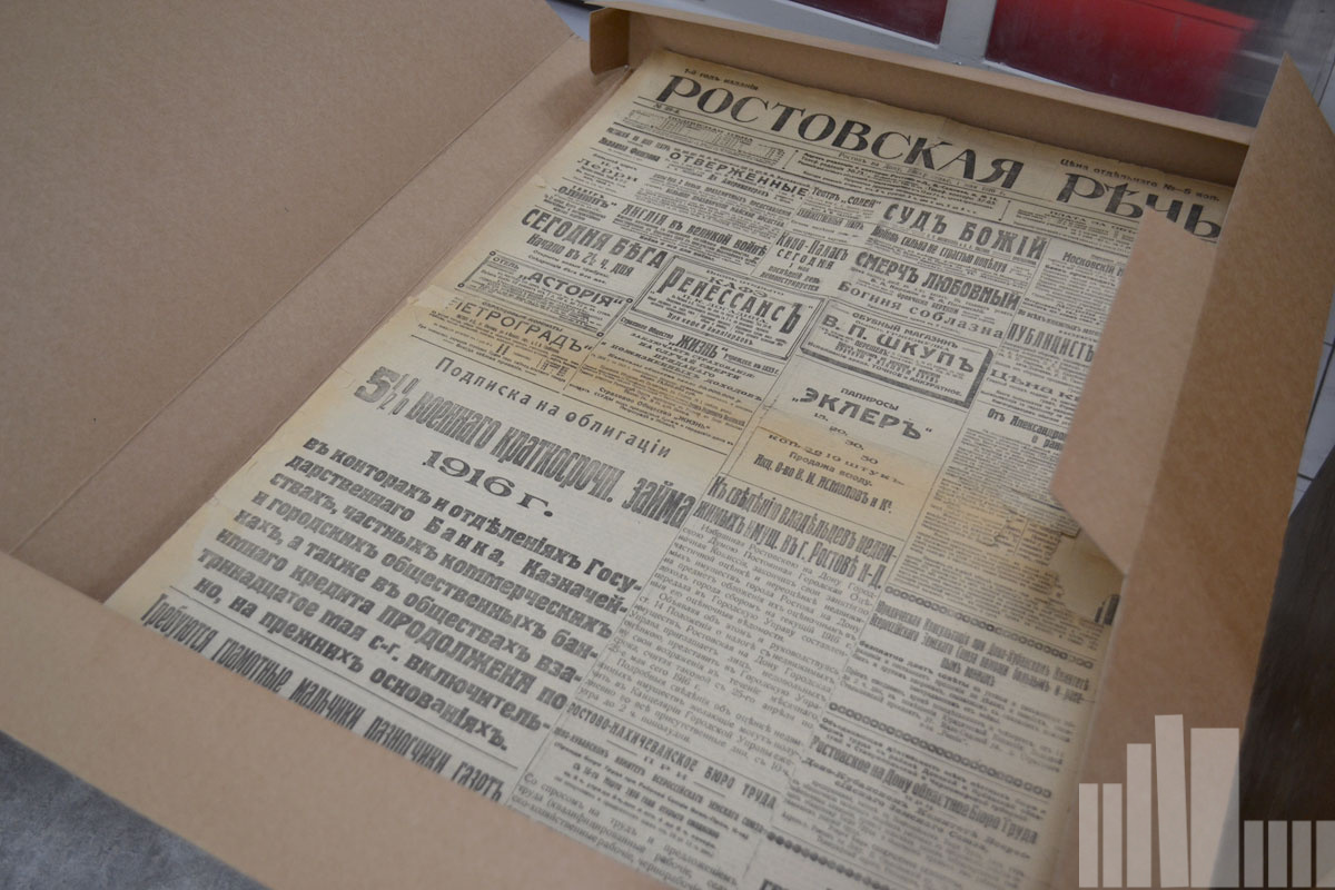 В 2025 году в центр консервации библиотечного фонда Донской государственной публичной библиотеки из Центральной городской библиотеки им. А.С. Пушкина г. Новочеркасска поступила подшивка газеты «Ростовская речь» за 1916 год с целью проведения комплекса мероприятий для подготовки к оцифровке.
