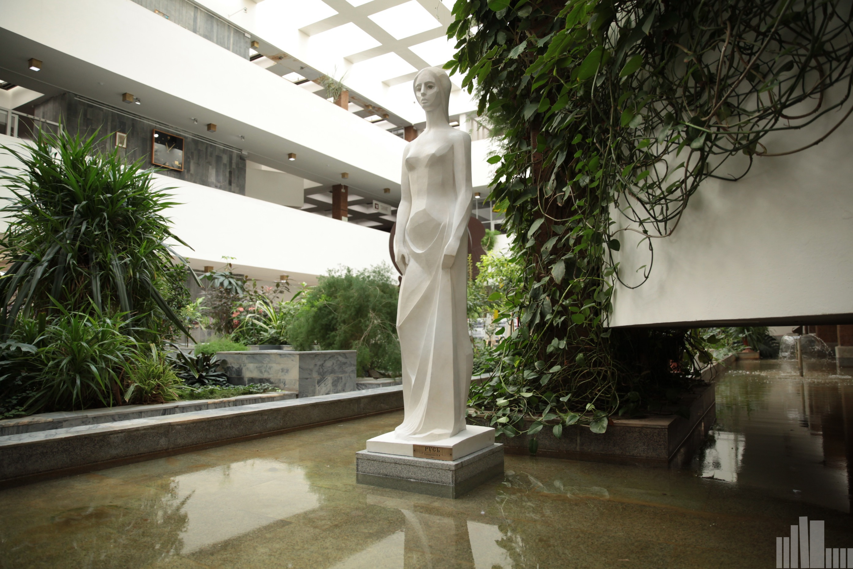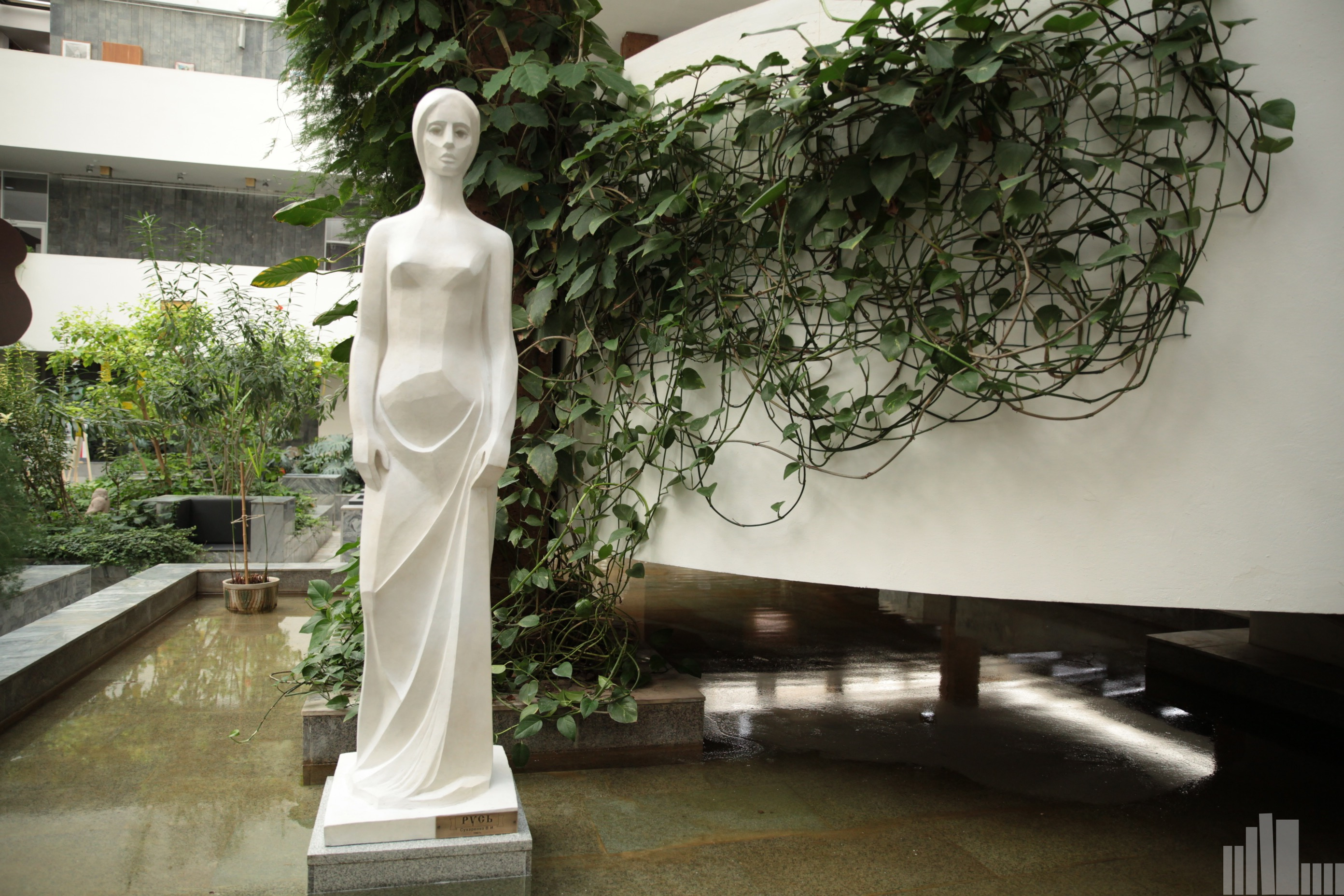 Коллекция скульптур Зимнего сада библиотеки пополнилась изящным двухметровым изваянием Валерия Ивановича Сухаренко «Русь».