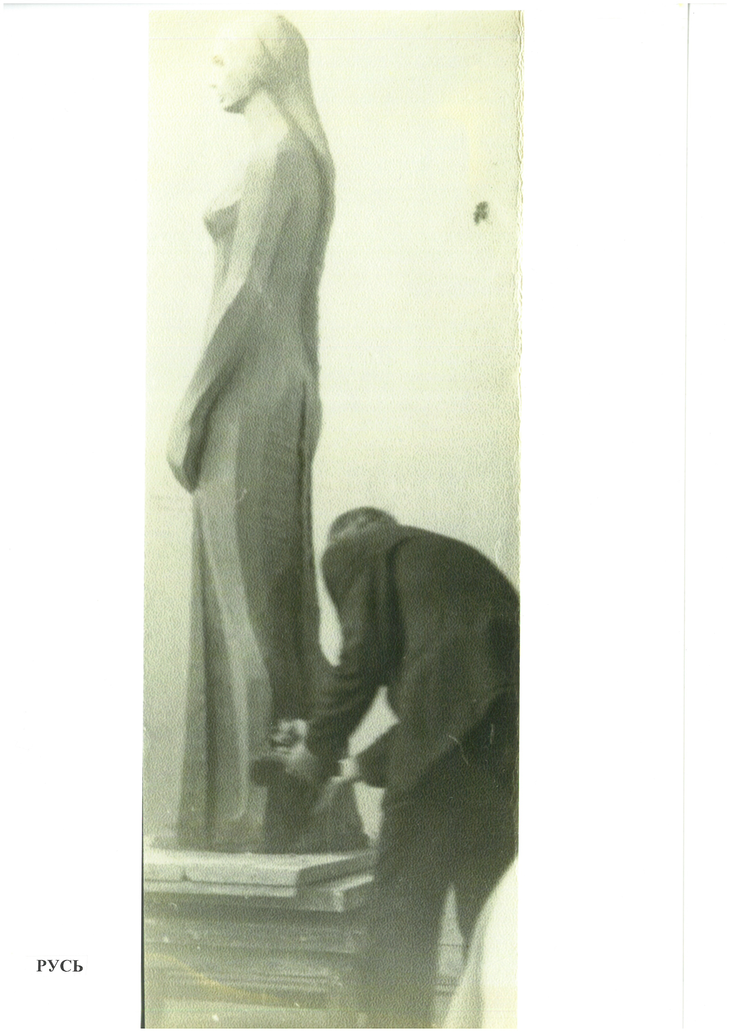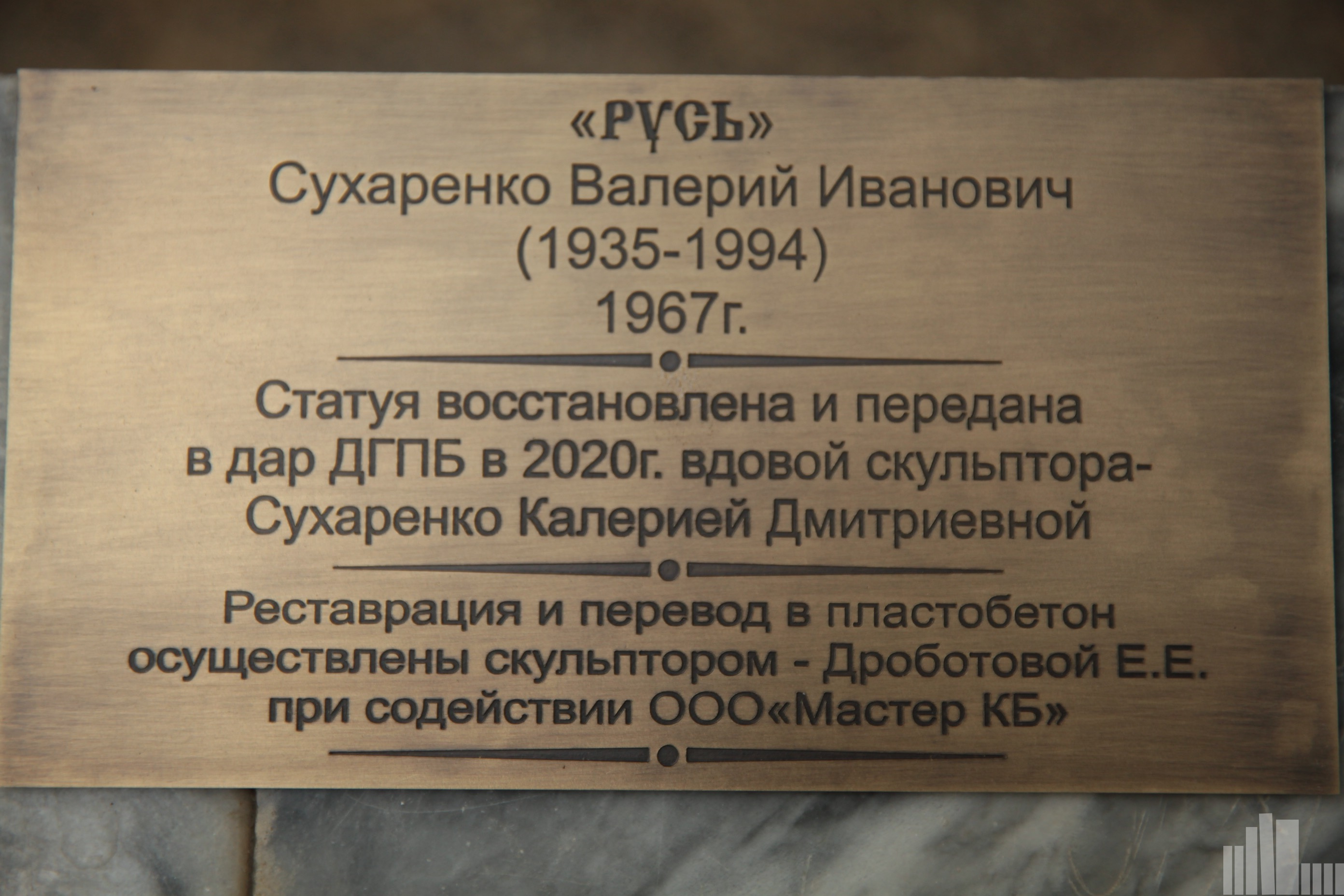 Скульптуру передала в дар библиотеке Калерия Дмитриевна Сухаренко, вдова ростовского скульптора Валерия Ивановича Сухаренко (1935-1994). Эта работа выполнена из бетона и была закончена мастером в 1967-м году.