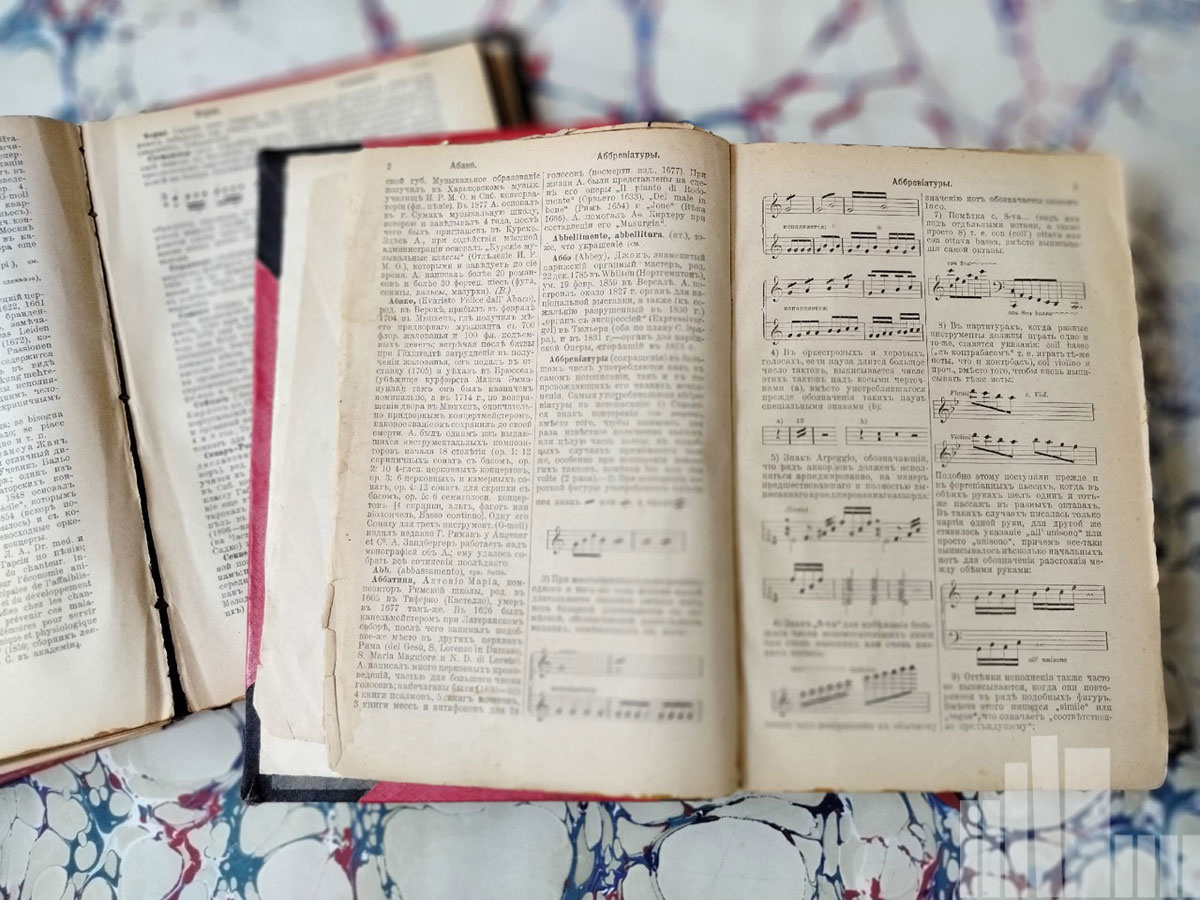 Риман Г., Музыкальный словарь / Г. Риман ; перевод с 5-го нем. изд., Б. Юргенса; дополненный русским отделом, составленный при сотрудничестве П. Веймарна, В. Преображенскогог, Н. Финдейзина, Ю. Энгеля, Б. Юргенсона и др.; перевод и все дополнения под редакцией Ю. Энгеля. - Перевод с 5-го немецкого издания. - Москва ; Лейпциг : Собственность издателя П. Юргенсона, [1901]. - [6],624 с. ; 20 см. (инв. номер Р 961.707).