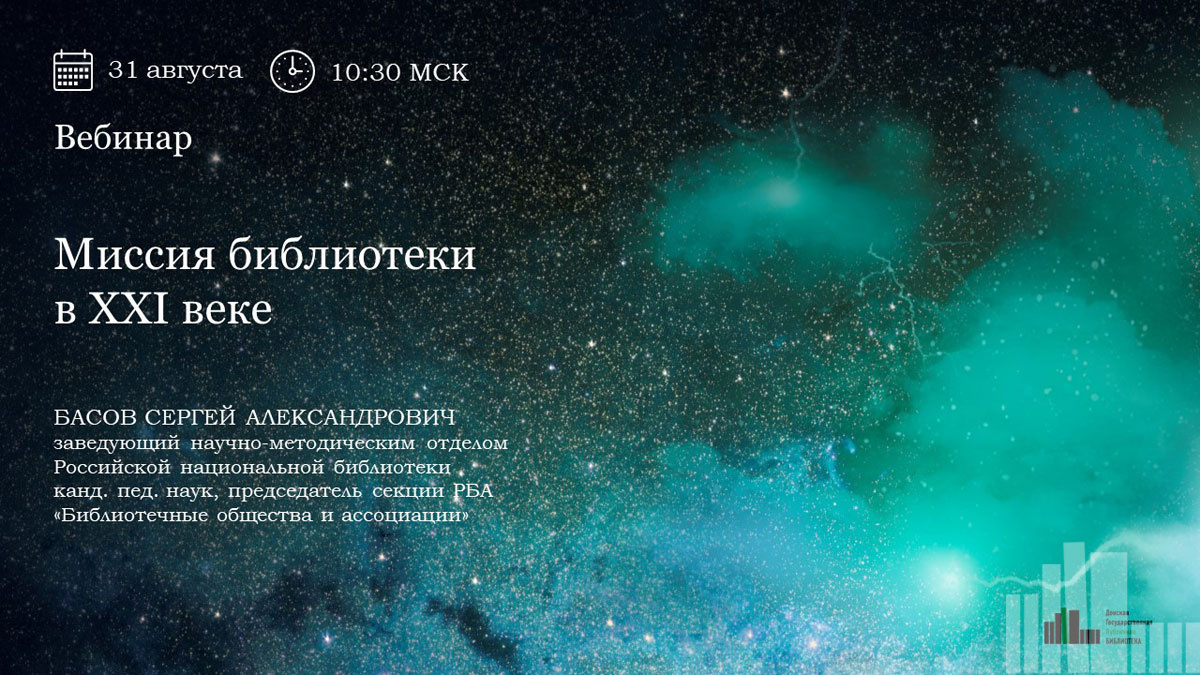 Спикер вебинара: Басов Сергей Александрович, заведующий научно-методическим отделом Российской национальной библиотеки, кандидат педагогических наук, председатель секции РБА «Библиотечные общества и ассоциации».
