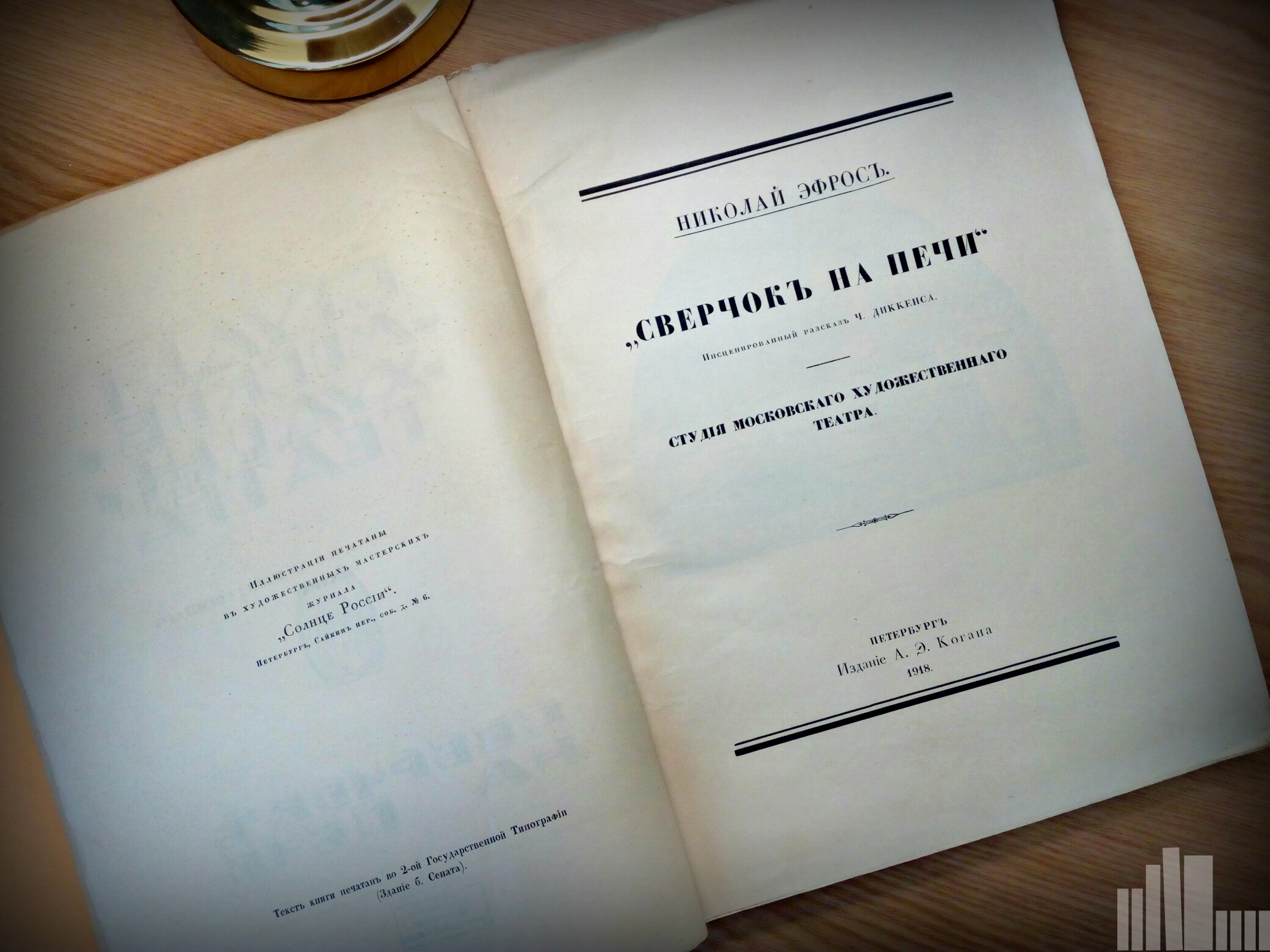 С 15 февраля в читальном зале центра по работе с книжными памятниками Ростовской области в рамках проекта «Выставка одной книги» вниманию посетителей представлен альбом: Эфрос Н. И. "Сверчок на печи": инсценированный рассказ Ч. Диккенса; Студия Московскаго художественнаго театра. - Петербург : Изд. А. Э. Когана, 1918.